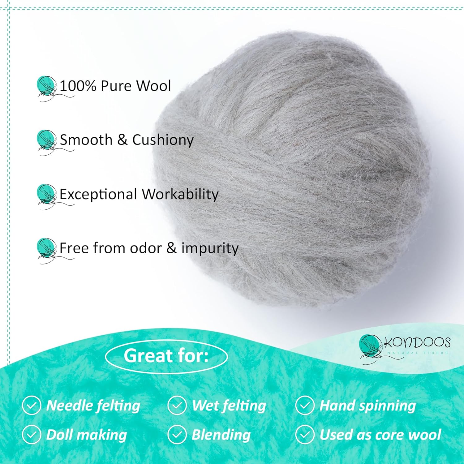 Natural Wool roving, 8 OZ. Best for Needle Felting, handcrafts and Spinning. Natural Colours, un-Dyed. (Gray Sand, 8 oz)