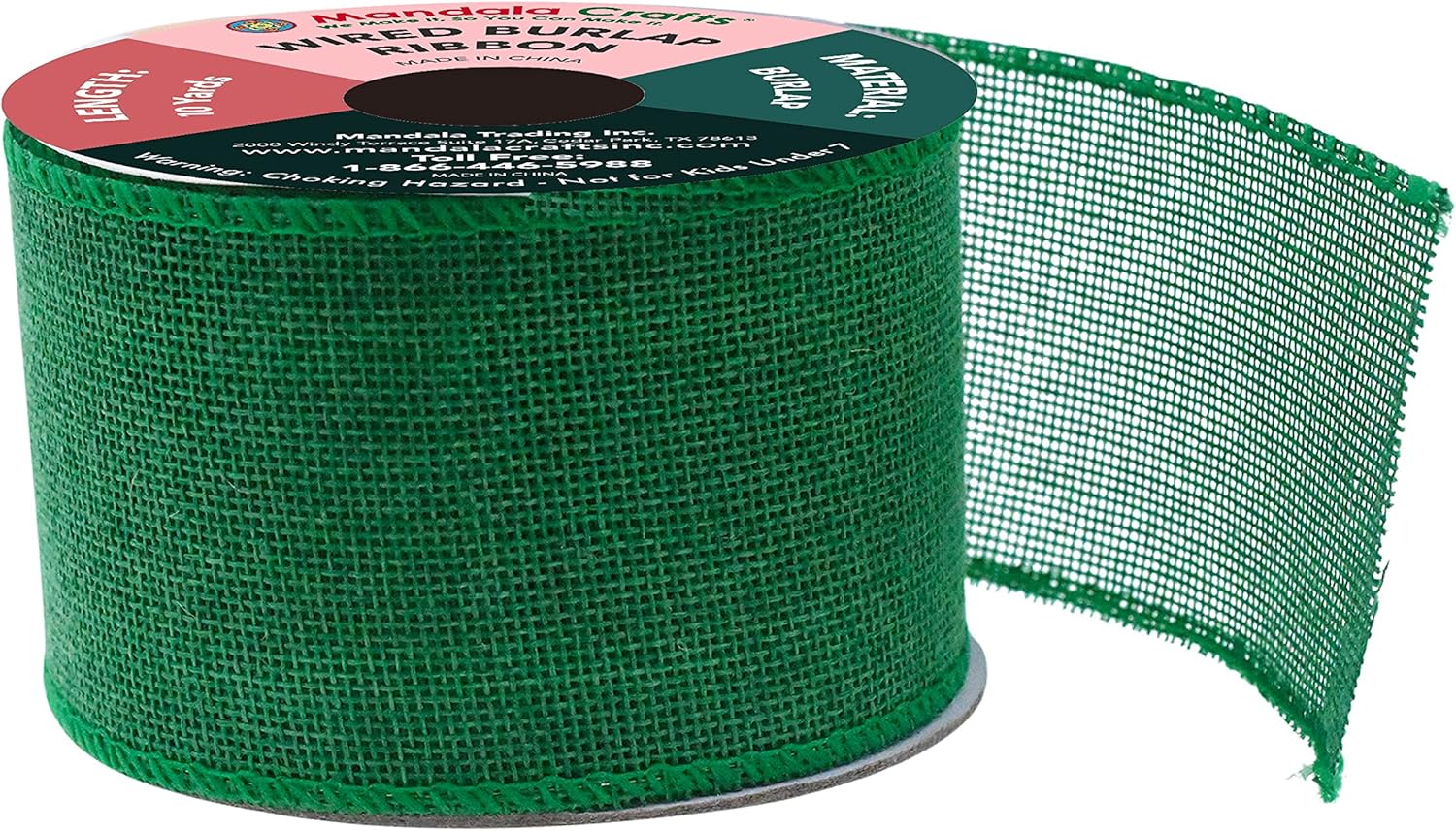 - Bulk Burlap Ribbon Green Linen Ribbon: The continuous 2.5 in colored burlap roll is 10 yards long. The wired burlap ribbon bulk pack is handy to decorate trees and mason jars or hang pictures.