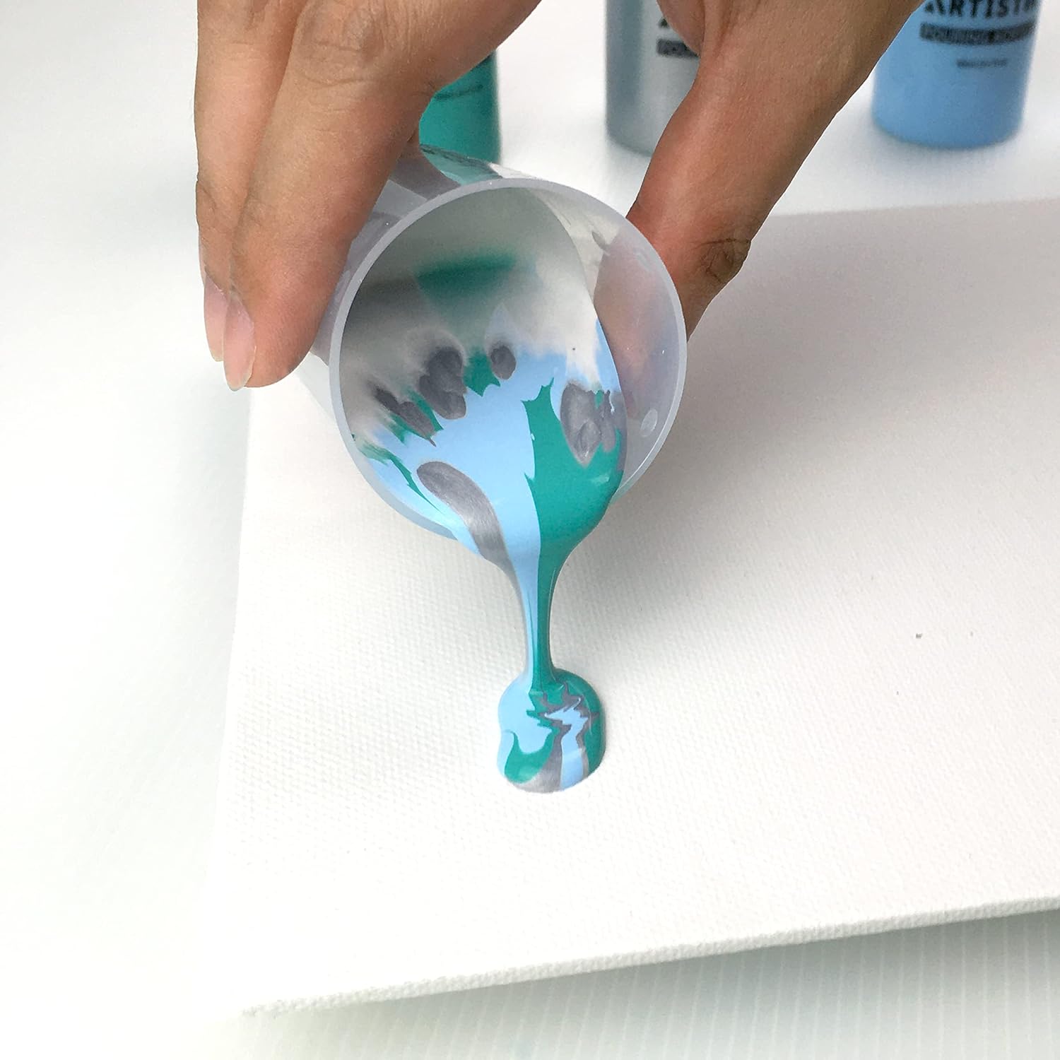 - READY TO POUR: Now the art of acrylic pouring is easy for everyone. No need to be intimidated by fluid painting or pouring paint techniques. Whether you're a beginner or a professional artist, you'll find our Artistik Pouring Paint Set suitable for your needs. The paints are ready to pour so no time will be spent for prepping
