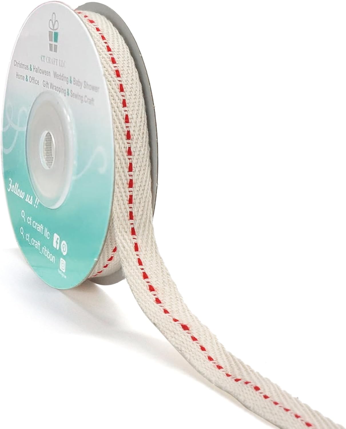 - EASY TO USE - The 10-yard long Ivory Cotton Red Stitched Ribbon 3/8" is enough for all the decorating and accenting your DIY Crafts. The Ivory Cotton Red Stitched Ribbon 3/8" is easy to use and won’t tangle. It can be tied or glued on gift packages and DIY craft projects such as car and chair bow, wreath, flower bouquet.