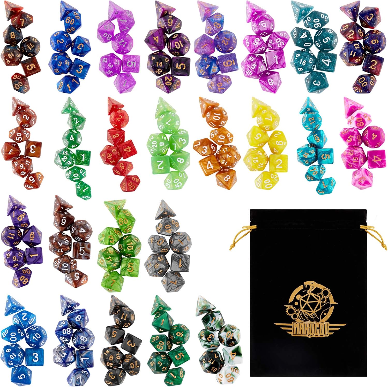 - 【Dnd Dice Sets】: 25 * Polyhedral Dice (175 pieces) contains 8 sets of two-color dice. Comes with a large cloth bag for easy storage and carrying.Colors are the same with the first picture, There are no repeated colors.