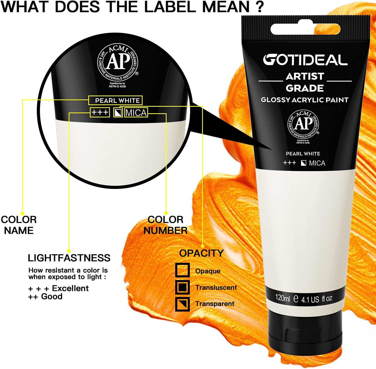 GOTIDEAL Metallic Acrylic Paint Pearl White Tubes(120ml, 4.1 oz) Non Toxic Non Fading,Rich Pigments for Painters, Adults & Kids, Ideal for Canvas Wood Clay Fabric Ceramic Craft Supplies (Pearl White)
