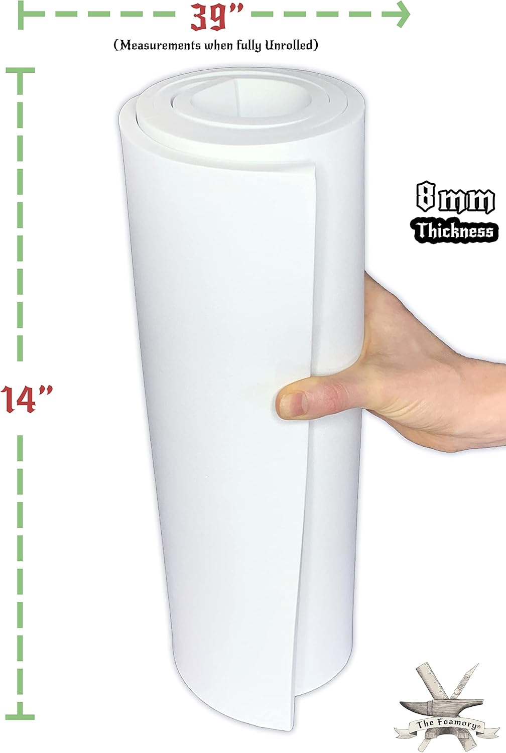 Shape Retention EVA Cosplay Foam 8mm (1mm-10mm) 14x39 inch White or Black High Density EVA Foam Sheets. Premium 85 kg/m3 Heat Shape Material for DIY Convention or Halloween Costumes by The Foamory