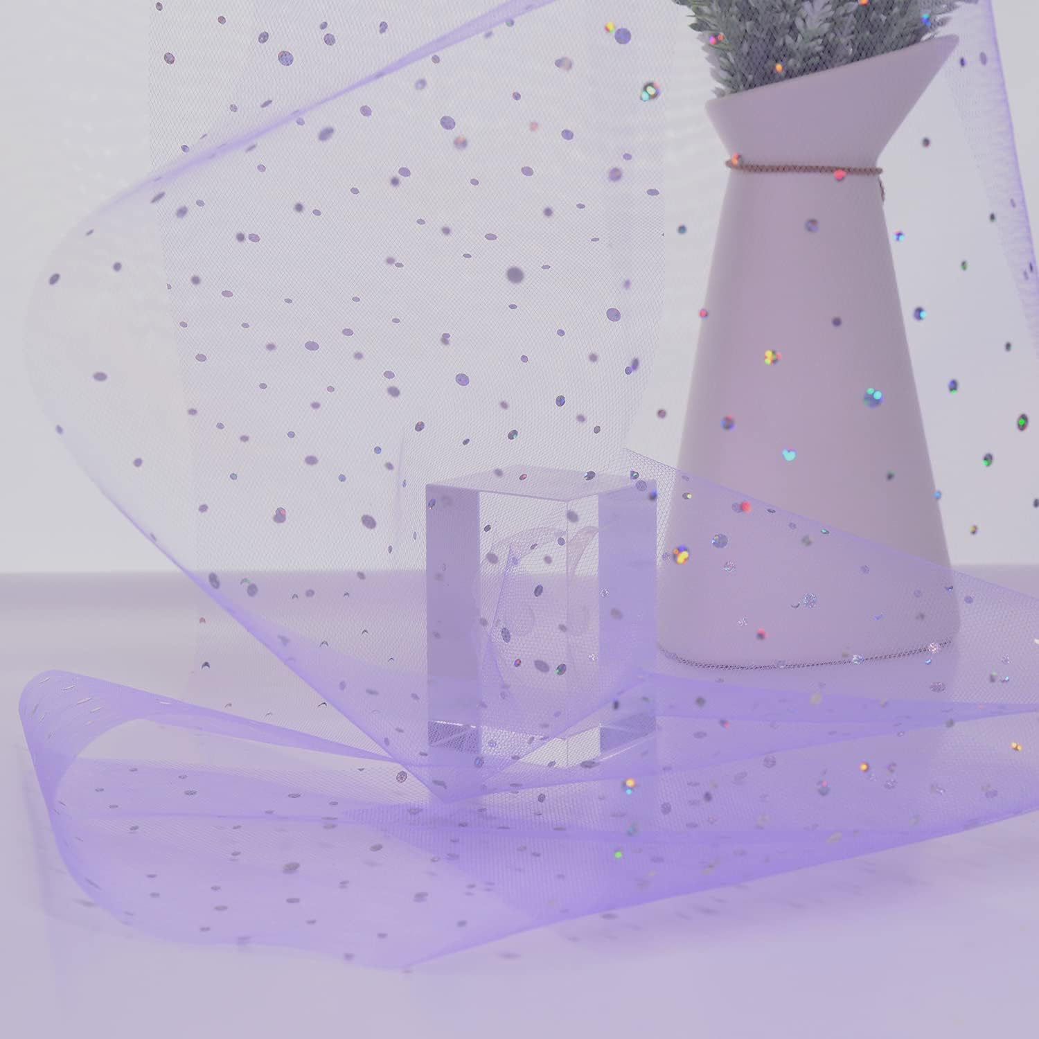 Glitter Tulle Rolls, 6” by 50 Yards (150FT) Netting Fabric Tulle for Tutu Skirts Sewing Birthday Wedding Party Decoration (Lavendar)