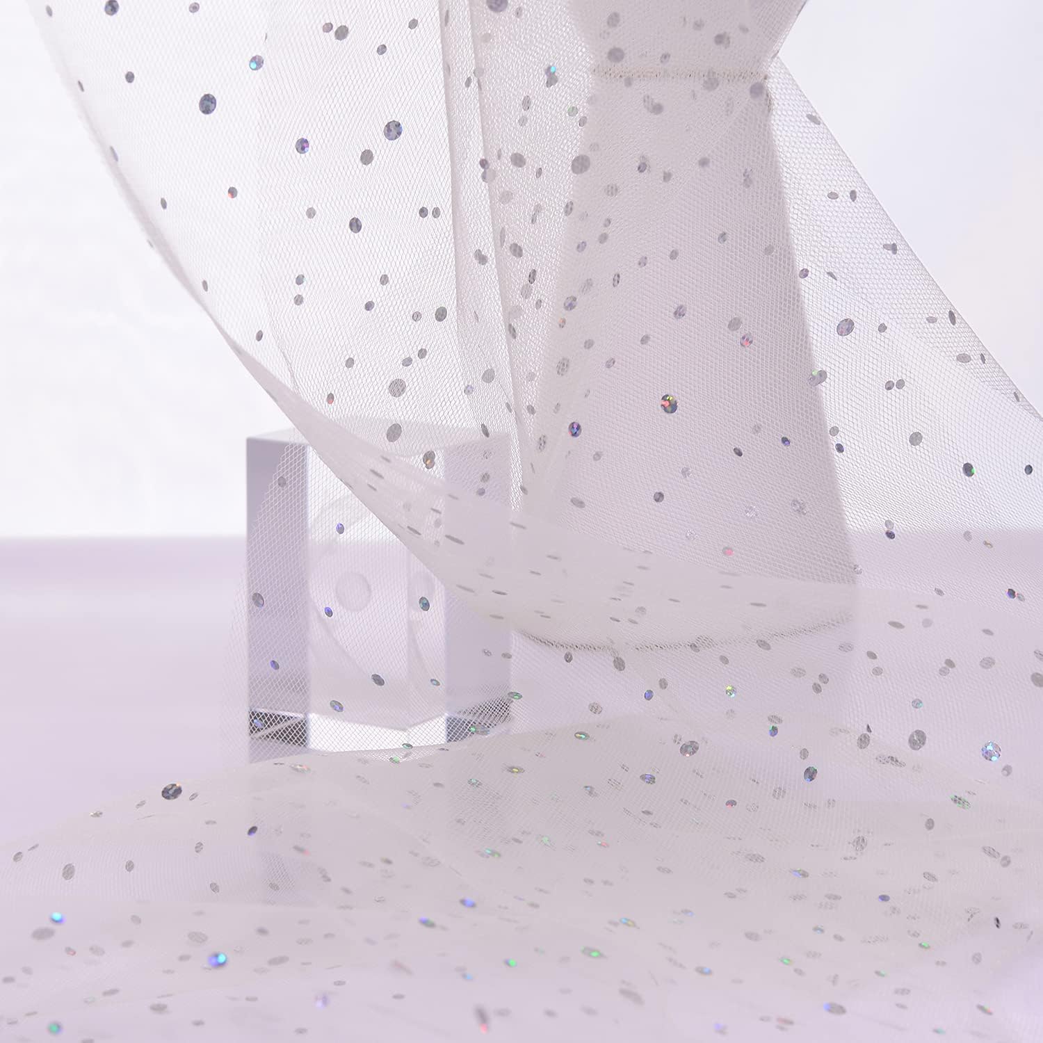 - 🎀【Premium Material】Made of 100% Soft Polyester, flexible diamond netting, lightweight / fine glitter tulle bolt, The fabric is easy to shape and use. Just cut the length you want to decorate. Tulle doesn't require stitching or finishing, it won't unravel!