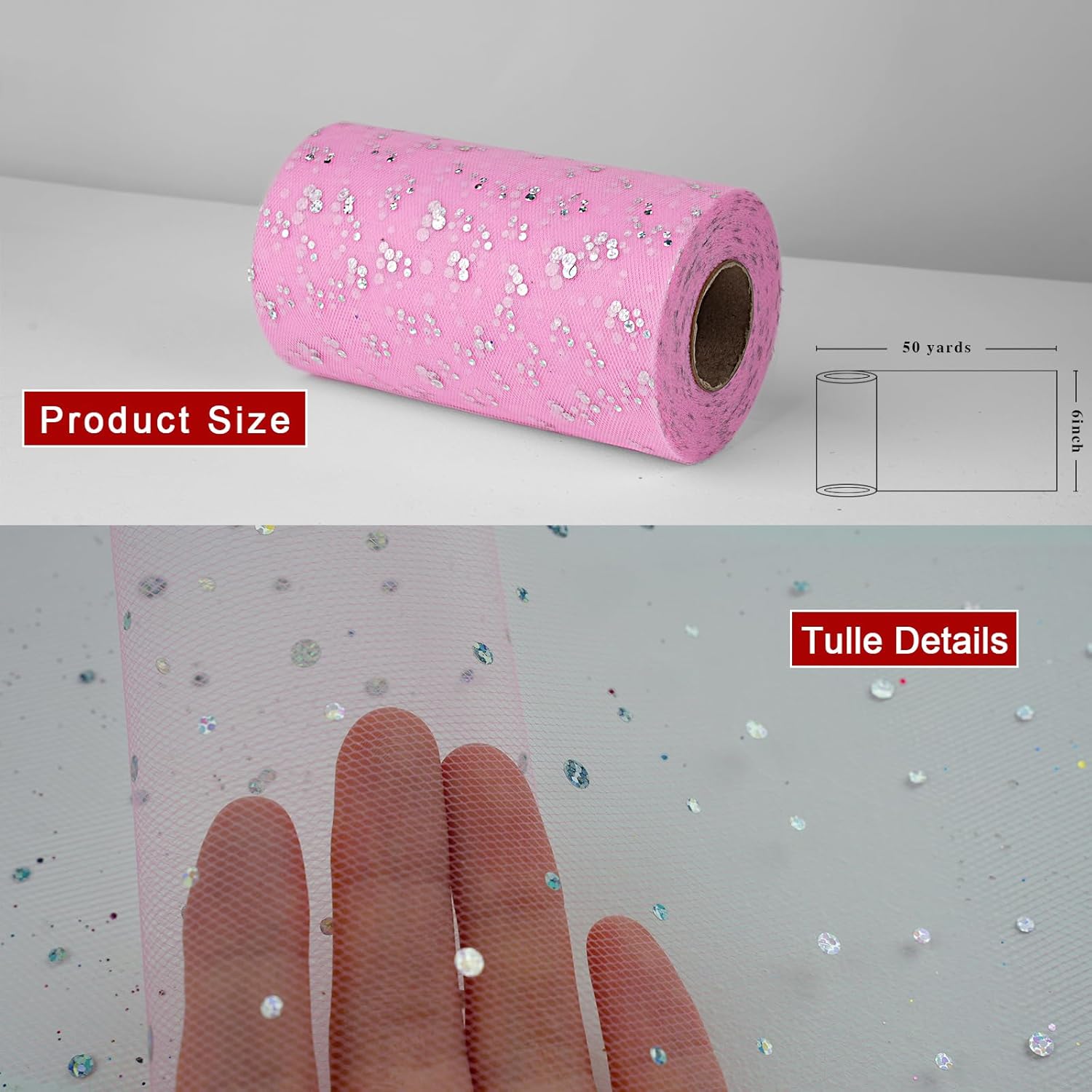 Glitter Tulle Rolls, 6' by 50 Yards (150FT) Sequin Tulle Netting Fabric for Tutu Skirts Sewing Birthday Wedding Party Decoration (Pink)