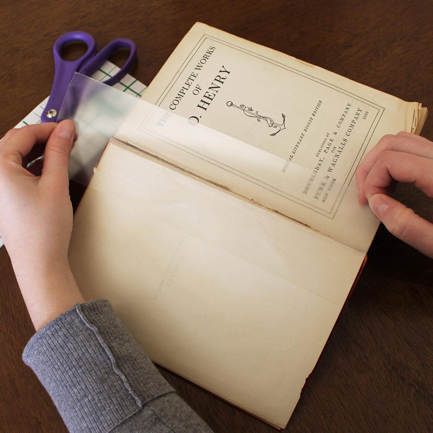 - This Non-glare matte finish tape comes on a grid liner for precise cutting & measuring and is rigid and durable for the toughest of book repair jobs