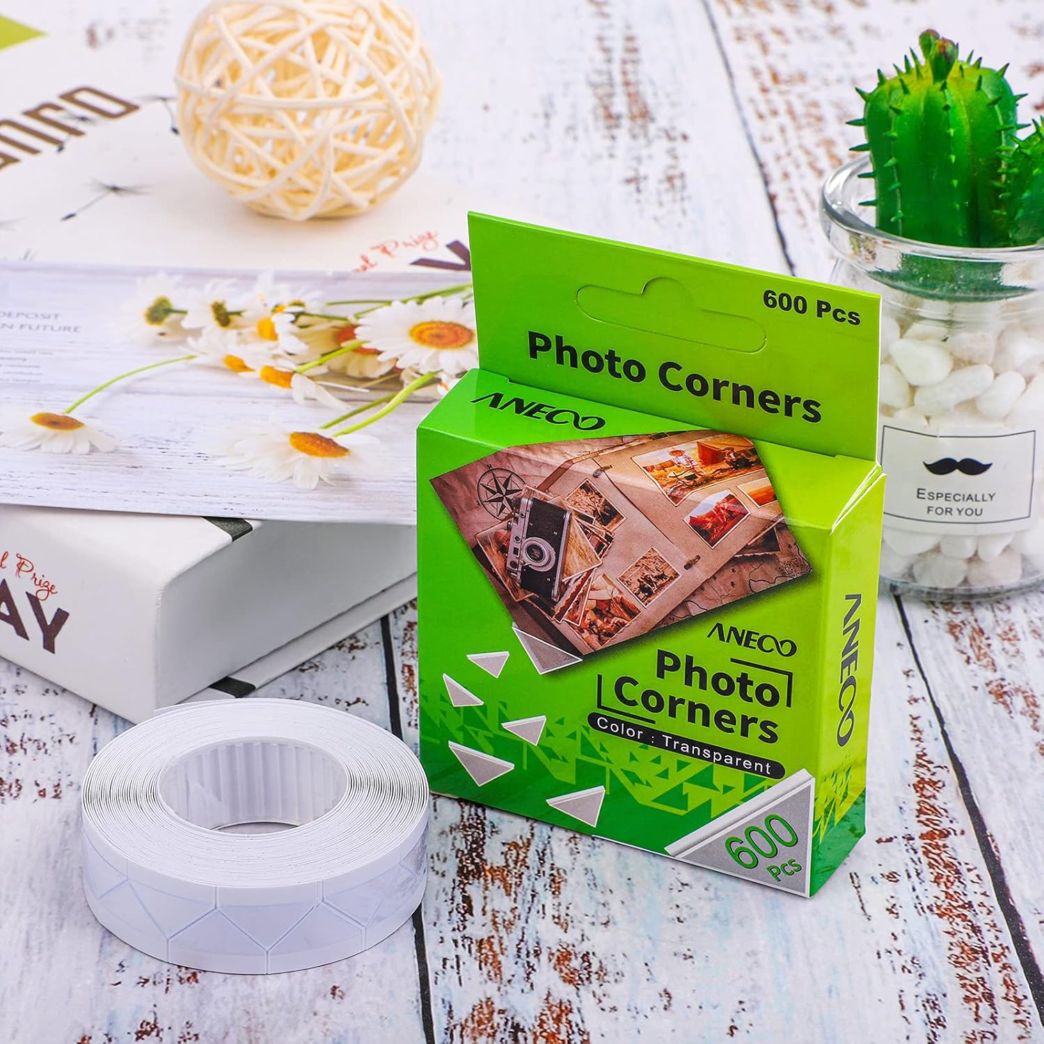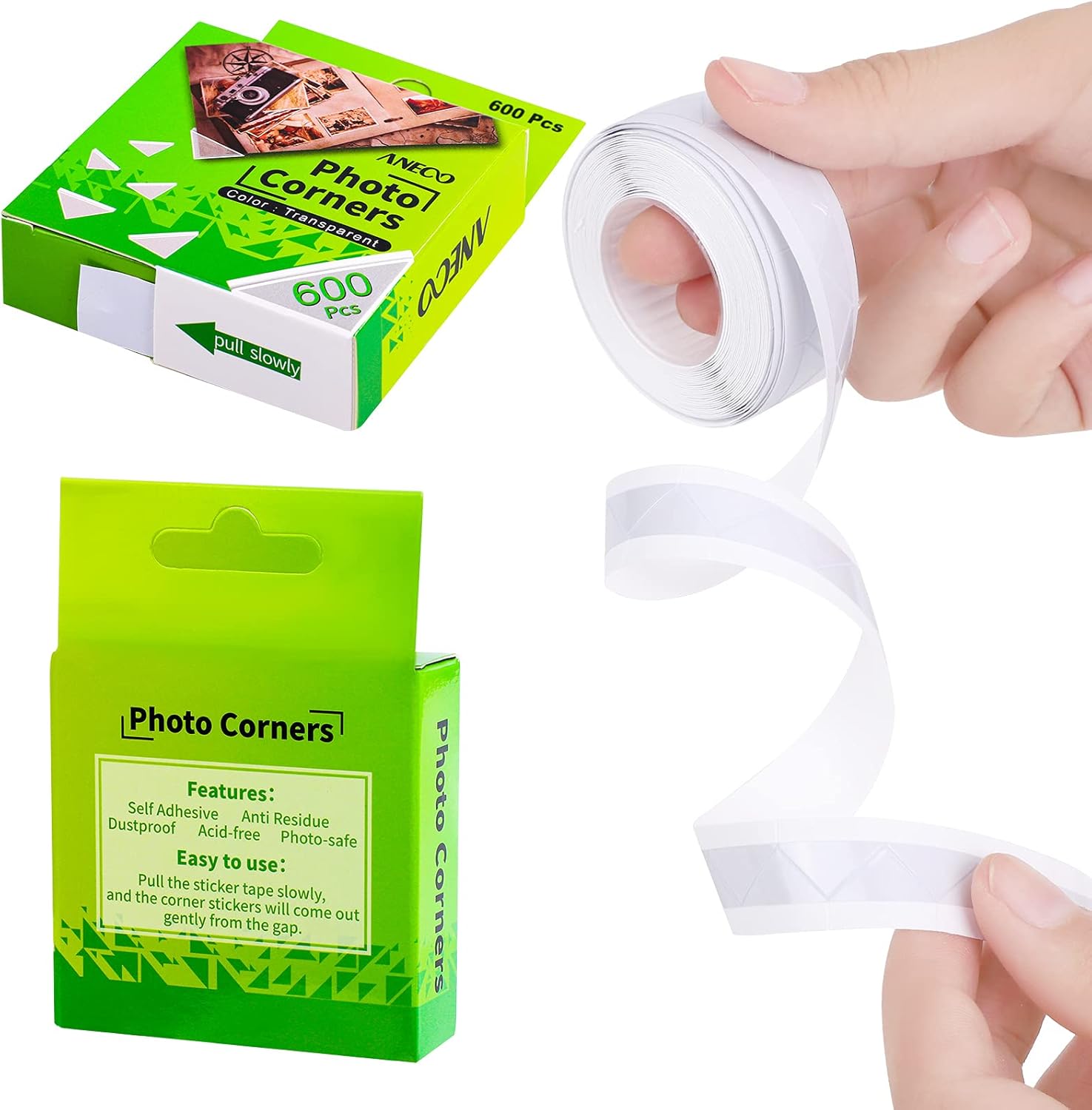 - The package contains: 600 pieces of self-adhesive photo corners on a white background in 1 box; sufficient quantity for your daily use for protecting your pictures and so on