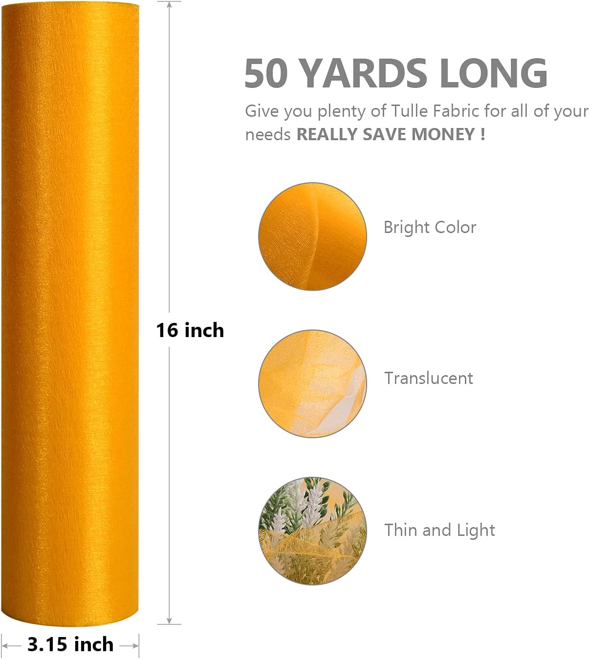 Crystal Organza Fabric Tulle - 16" by 50 Yards Sheer Fabric for Wedding Party Decoration Bridal Shower Tutu Roll Netting Spool Ribbon Wrapping (Gold)