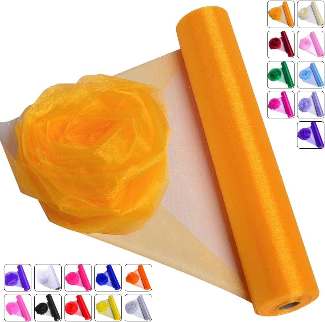 - 🌺【16Inch x 50Yards】The organza fabric is 16" wide continuous 50 yards long can meet the various needs of your projects. 20 charming colors Available.❖Delicate filmy fabric❖Moderate hardness❖Colorful& fashionable.