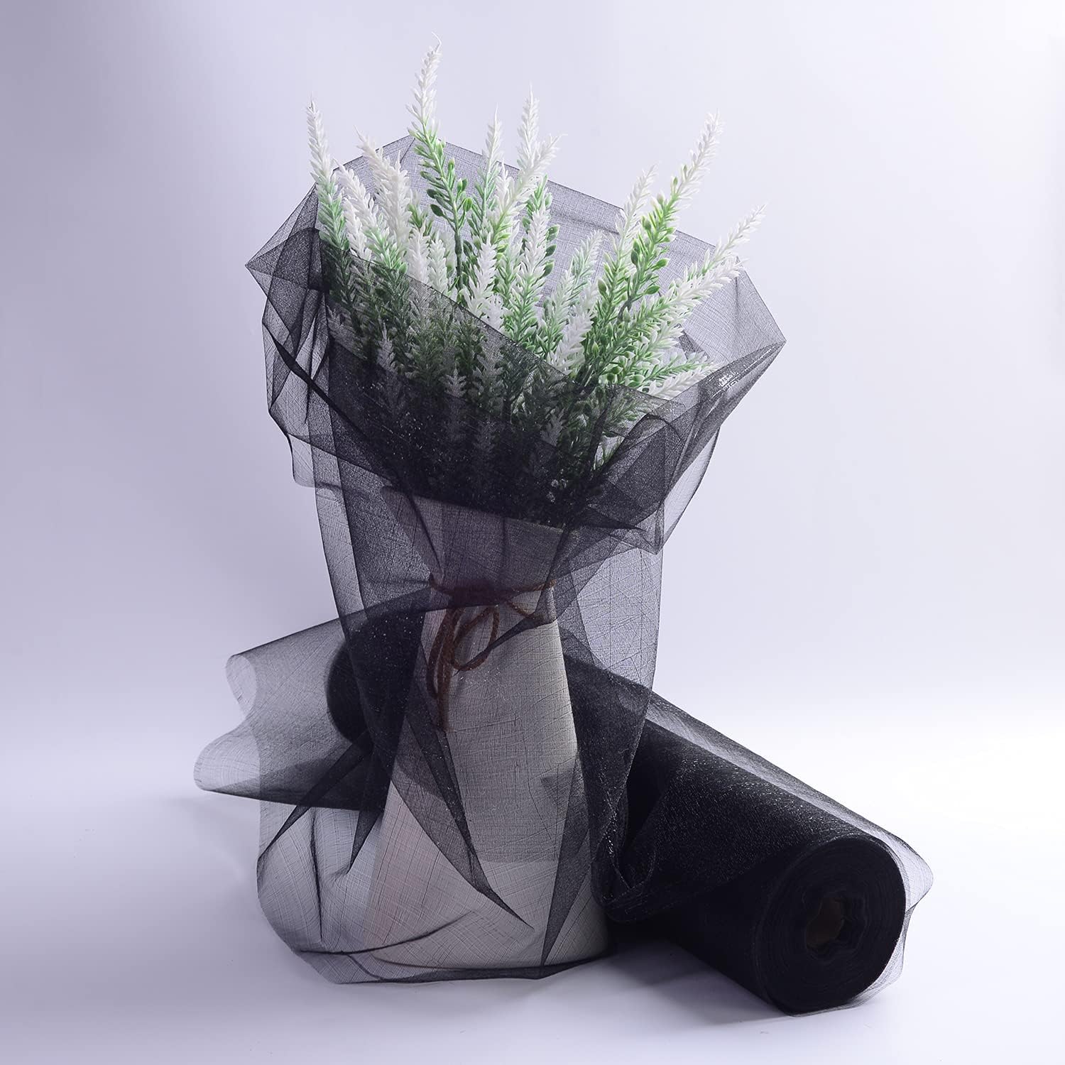 Crystal Organza Fabric Tulle - 16" by 50 Yards Sheer Fabric for Wedding Party Decoration Bridal Shower Tutu Roll Netting Spool Ribbon Wrapping (Black)