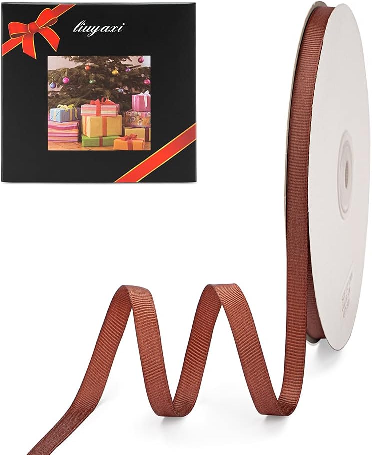 LIUYAXI 1/4" X 50 Yards Solid Brown Grosgrain Ribbon, Perfect for Crafts, Wedding Decor, DIY Hair Accessories, Sewing, Gift Package Wrapping and More