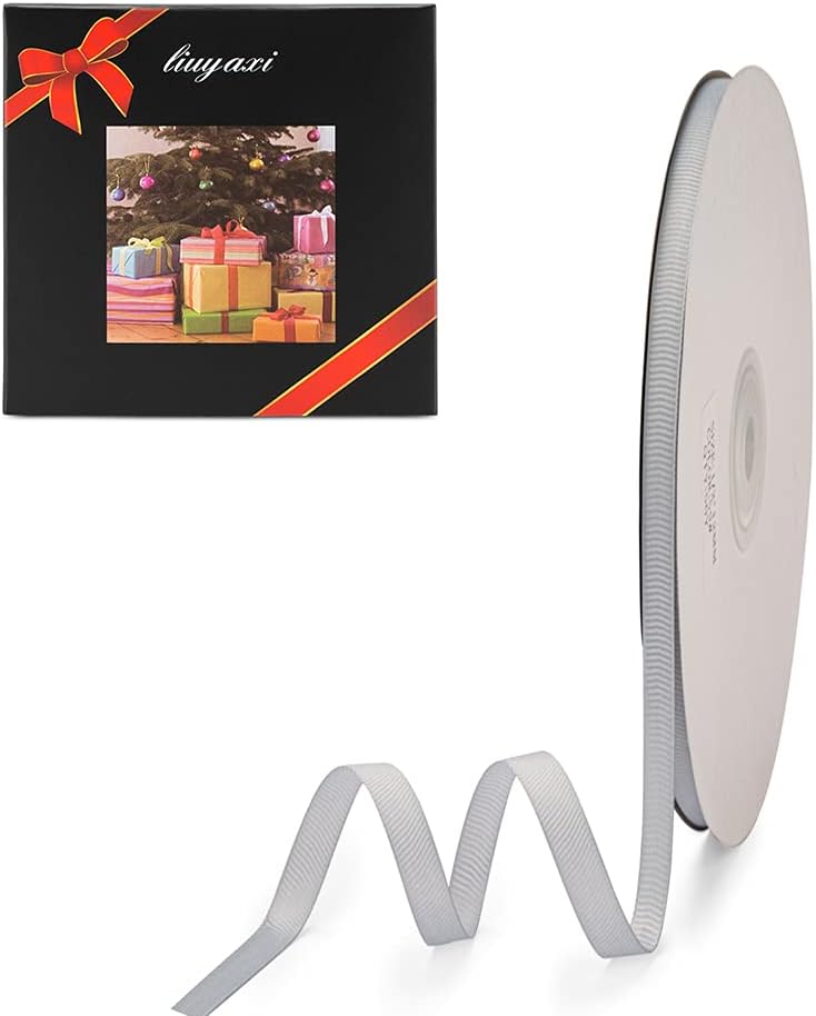 LIUYAXI 1/4" X 50 Yards Solid Silver/Grey Grosgrain Ribbon, Perfect for Crafts, Wedding Decor, DIY Hair Accessories, Sewing, Gift Package Wrapping and More