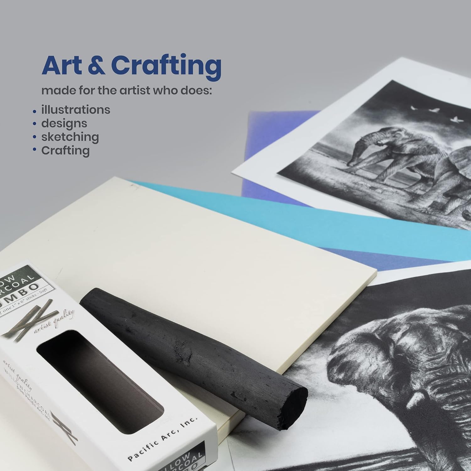 Pacific Arc Large Willow Charcoal Stick, Soft, Black, Willow Charcoal for Sketching and Drawing