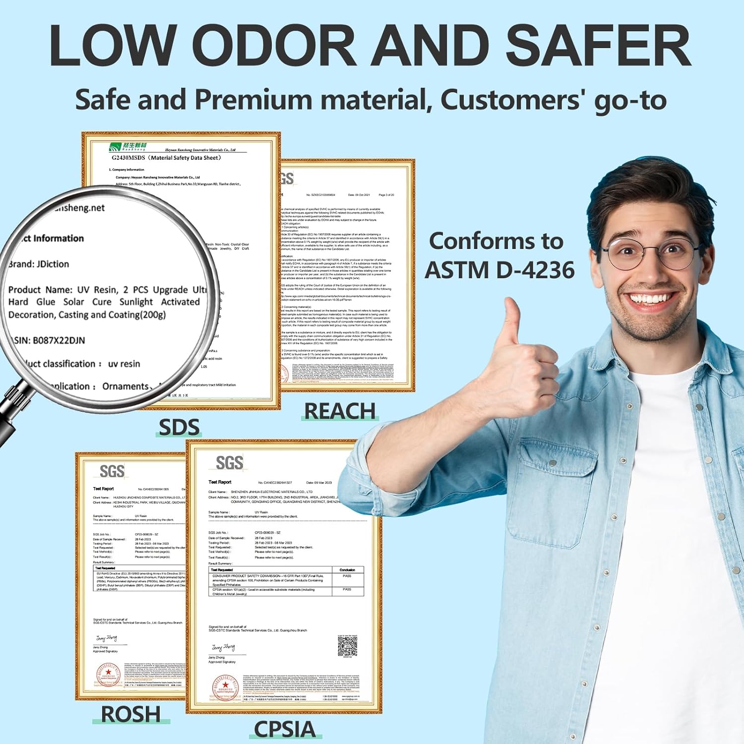- 💦 【Higher Efficiency】Simple operation, UV resin can be used directly without modulation; Curing time is very short, you will complete your handicrafts after irradiate under UV lamp for 2-4 minutes.