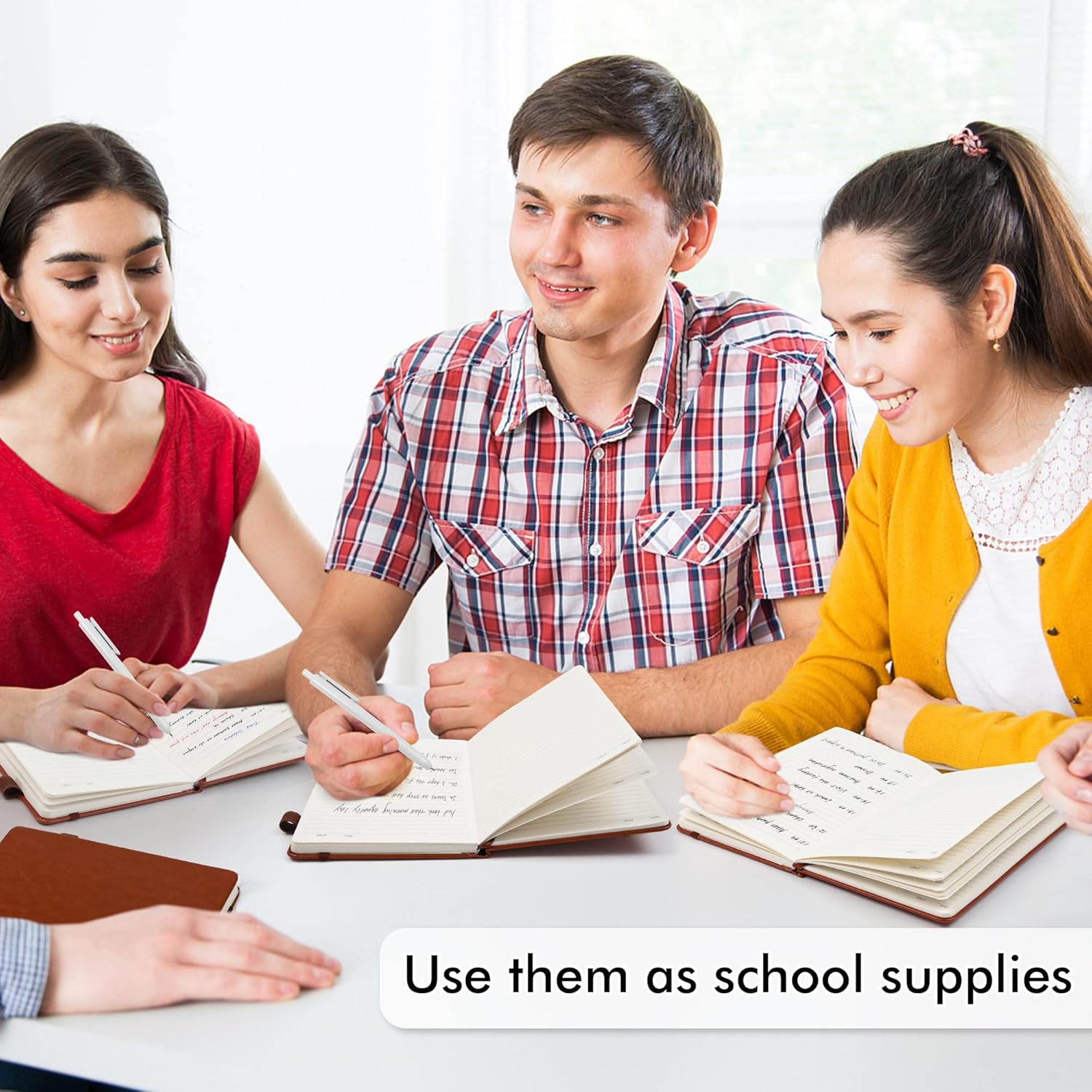 - Feela 5 Pack Classic Ruled Notebooks contains 5 classic brown ruled sturdy cover notebooks and 5 Black Retractable Pens. Each of the notebooks measures 8.3” x 5.1”, which is perfect to carry and easily held by young girls and boys. These black cute pens are customized to be placed in the pen holder, which is pretty convenient.