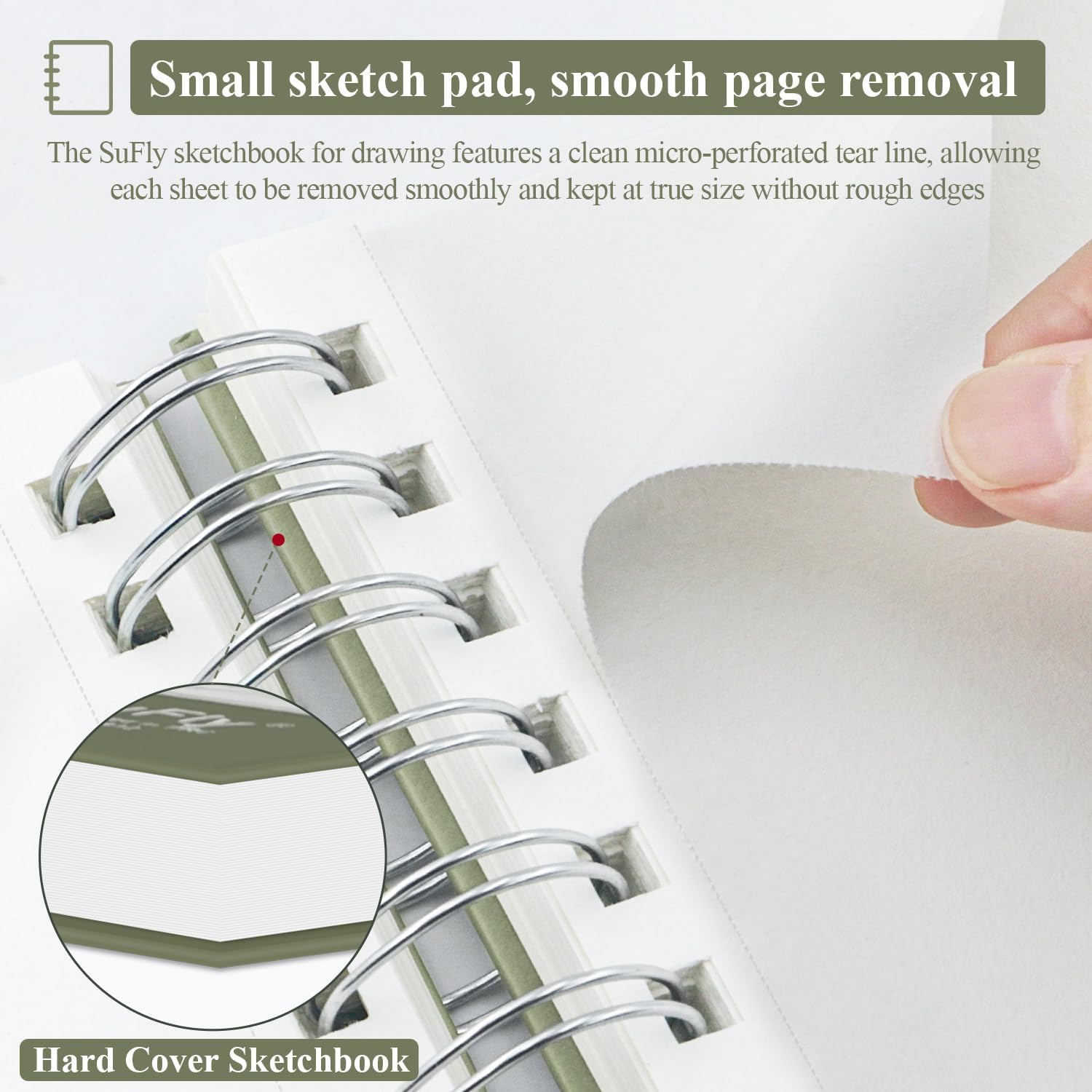 - READY TO DRAW ANYWHERE - Our set of loose spiral bound sketchbook features a robust and sturdy hardcover design on the front and back, making the scetch books for drawing easy to remove and draw whenever inspiration strikes, giving sturdy support and protecting your work when use spiral sketchbook during your daily commute or outdoor travels. The 5.5" x 8.5" size small sketchbook also makes this mini sketchbook easy to store in your backpack or suitcase and enjoy painting anytime, anywhere.