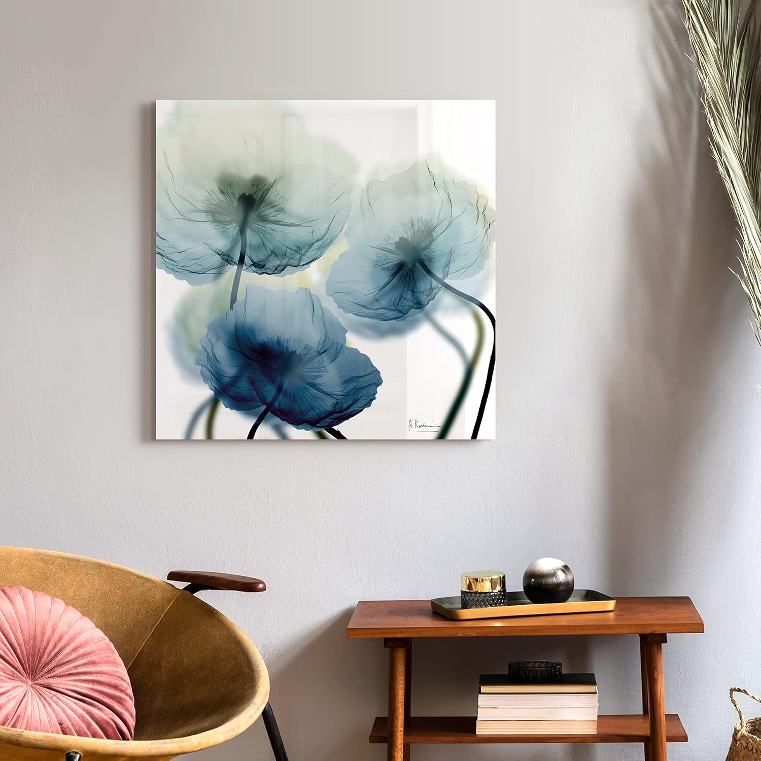 - FLOWER, POPPIES FRAMELESS TEMPERED GLASS WALL ART - In collaboration with Albert Koetsier, this beautiful piece displays an X-Ray image of blue flowers. Digital super high resolution printing artwork on ultra white tempered glass.