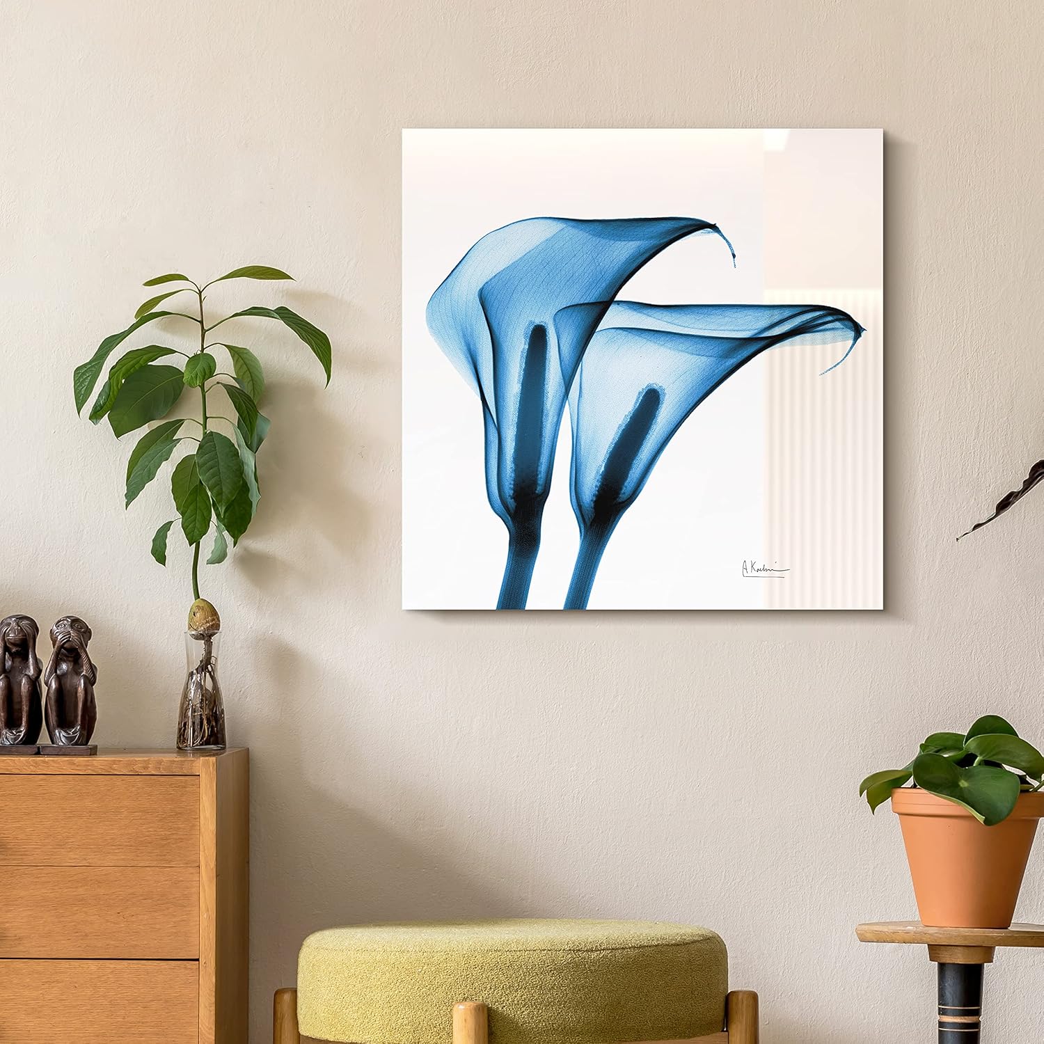 - FLOWER, LILIES FRAMELESS TEMPERED GLASS WALL ART - In collaboration with Albert Koetsier, this beautiful piece displays an X-Ray image of indigo calla lilies. Digital super high resolution printing artwork on ultra white tempered glass.