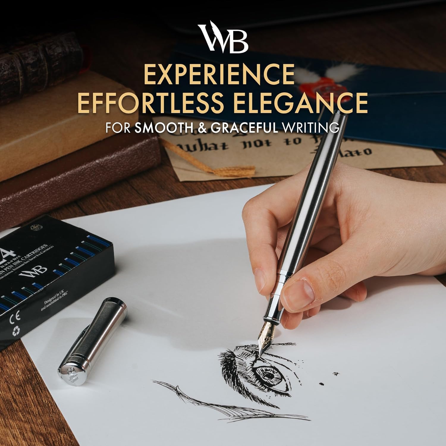 - ✒️ Discover The All-inclusive Refillable Fountain Pen Set - Includes luxurious Fountain pen, Ink converter, 12 x blue ink cartridges, 12 x black ink cartridges, Premium Leather Gift box - ready to be gifted. Included with every order is a complete instruction booklet for your Wordsworth and Black Pen Set. All the information you'll need to get started using and enjoying your luxurious writing tool will be right at your fingertips!