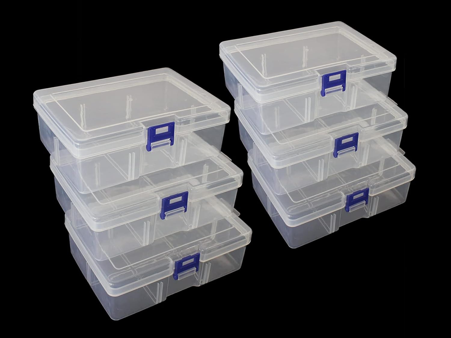 6-Piece Clear Plastic Storage Box with Snap-Tight Latch - Organizer Container for Pencils, Puzzles, Small Toys, Jewelry Making & Sewing Crafts (Small Size)