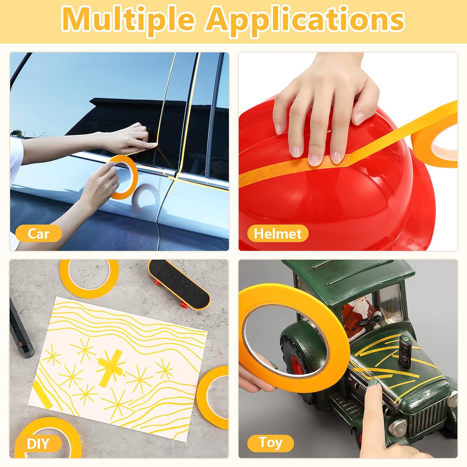 - Multi purpose tape: our painters automotive masking tape works well for DIY, customized car and motorcycle paint graphics, automotive masking tape, etc.; There are more functions waiting for you to find out