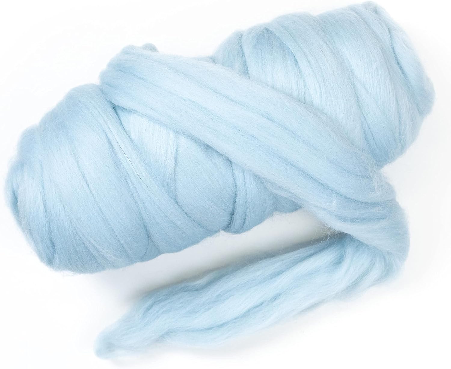Kondoos Colored Natural Wool roving, 1 lb. Best Wool for Needle Felting, Wet Felting, handcrafts and Spinning. (Light Blue, 1 lb)