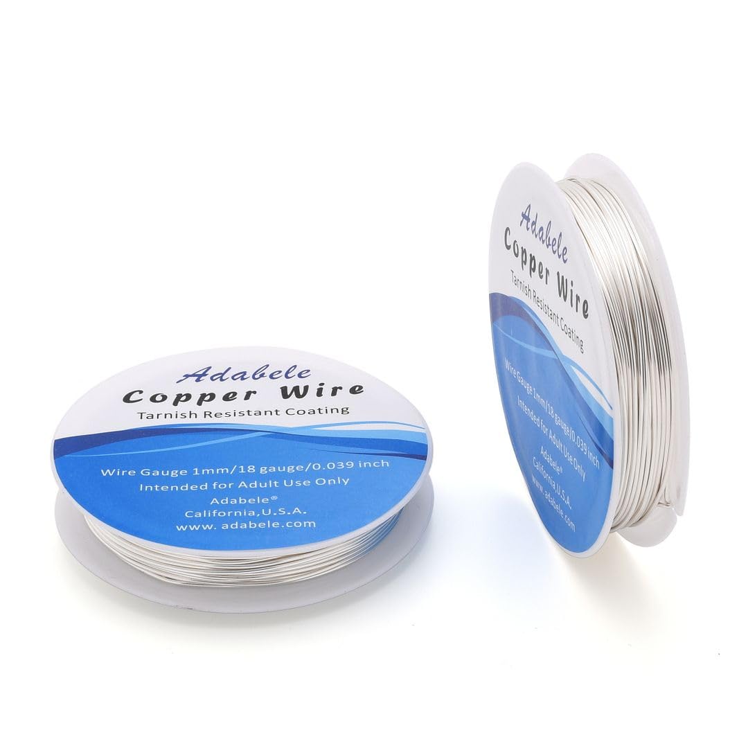 Adabele 32 Feet Premium Tarnish Resistant Round Jewelry Wire Copper Beading Wire Spool Bulk (1mm/18 Gauge) Sterling Silver Plated for DIY Craft Jewelry Making BF285-10