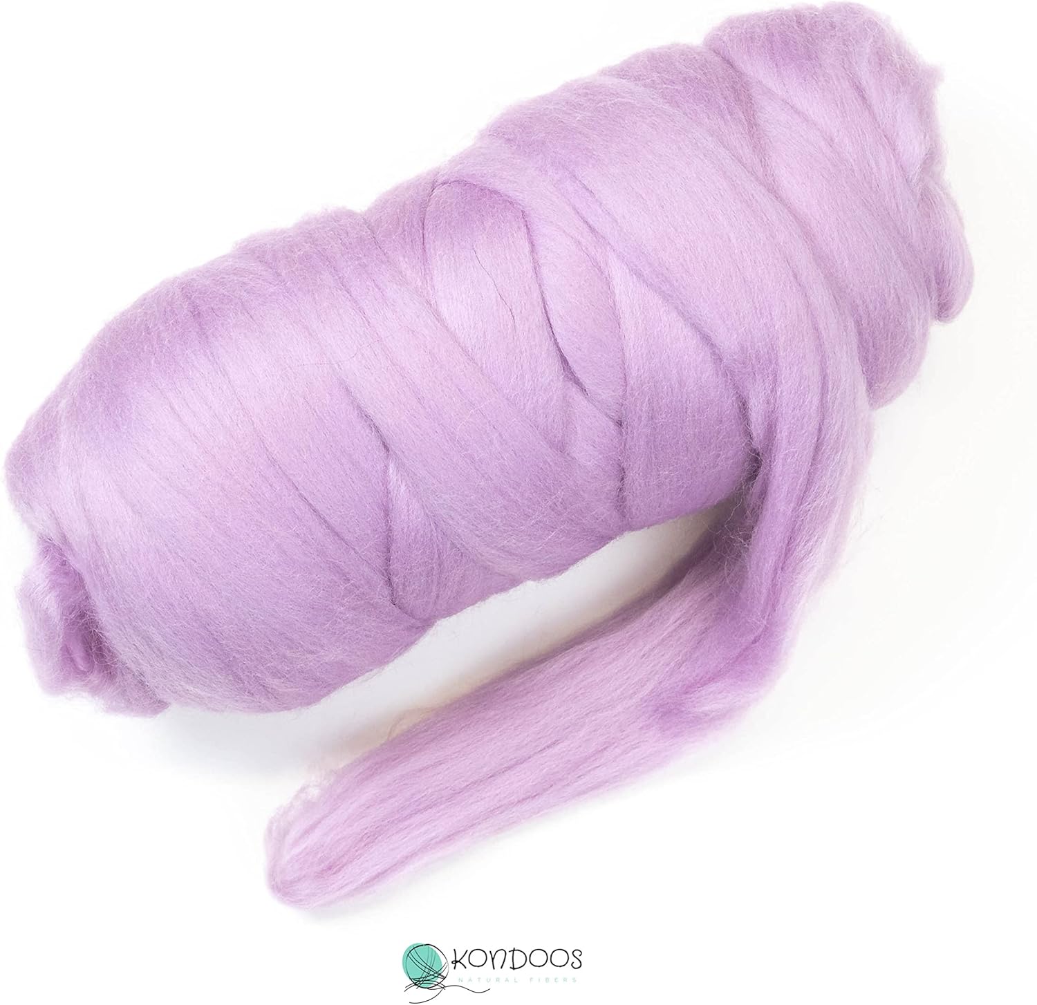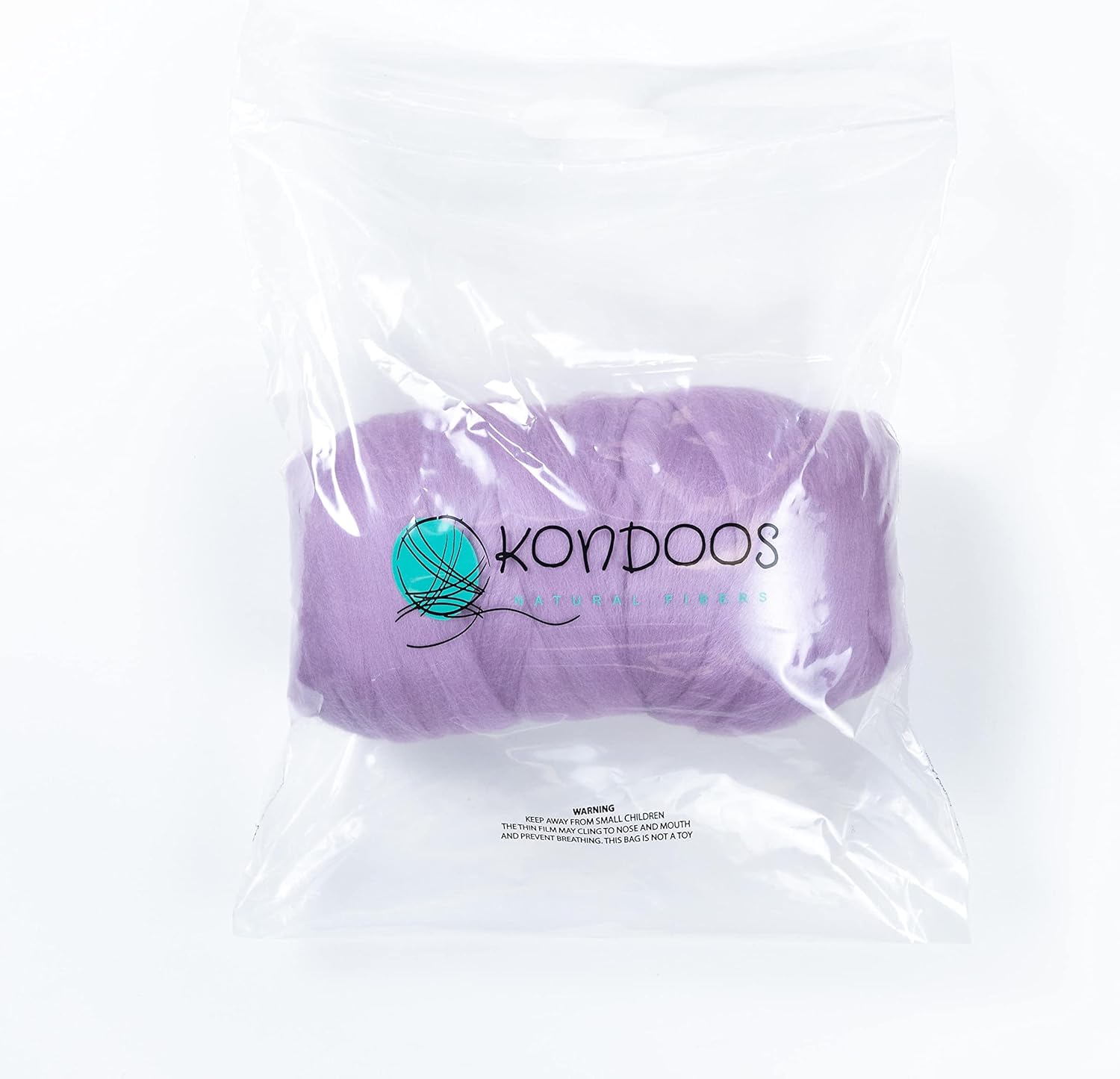 Kondoos Colored Natural Wool roving, 1 lb. Best Wool for Needle Felting, Wet Felting, handcrafts and Spinning. (Lavender, 1 lb)
