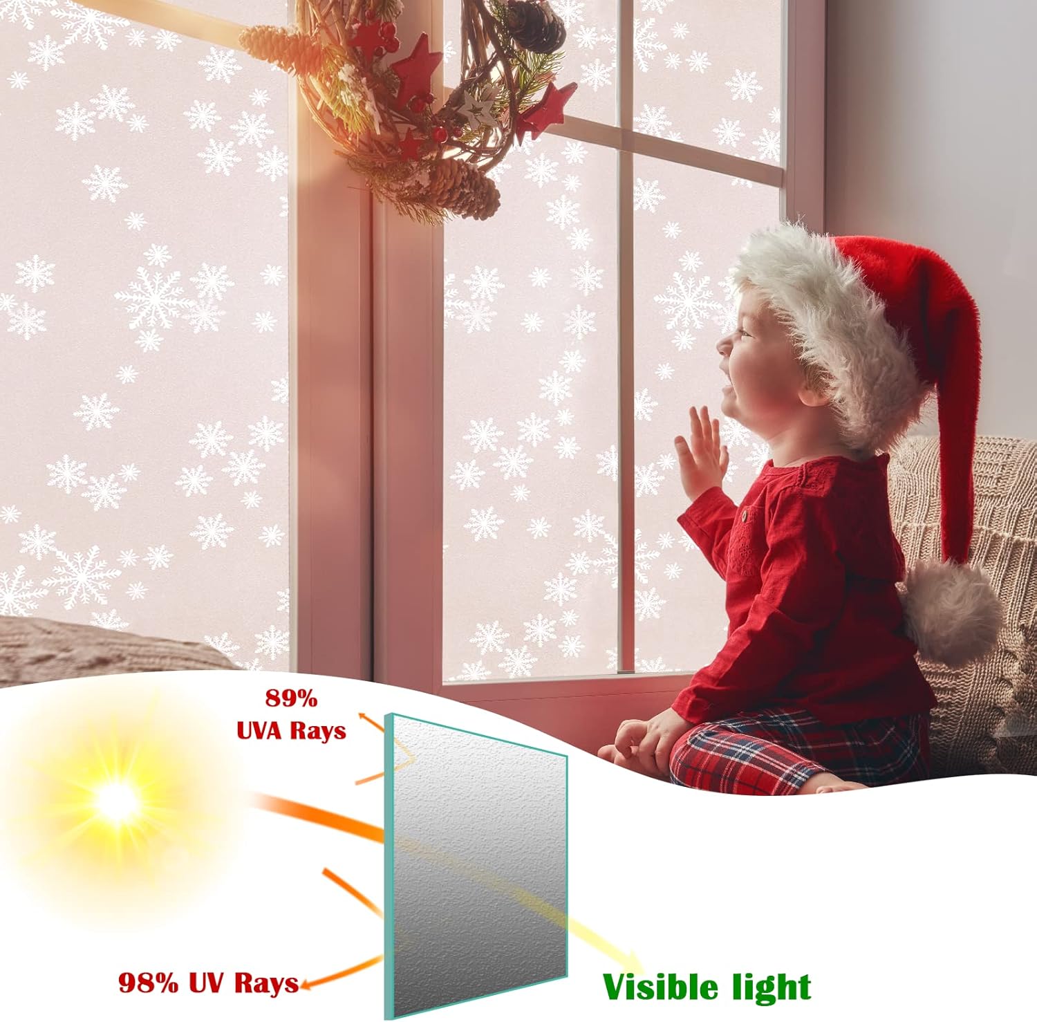 - UV Protection Window Cling: Solar control properties will reduce part of heat and harmful UV rays. Protective of indoor items do not fade and aging. Provides privacy while allows light in