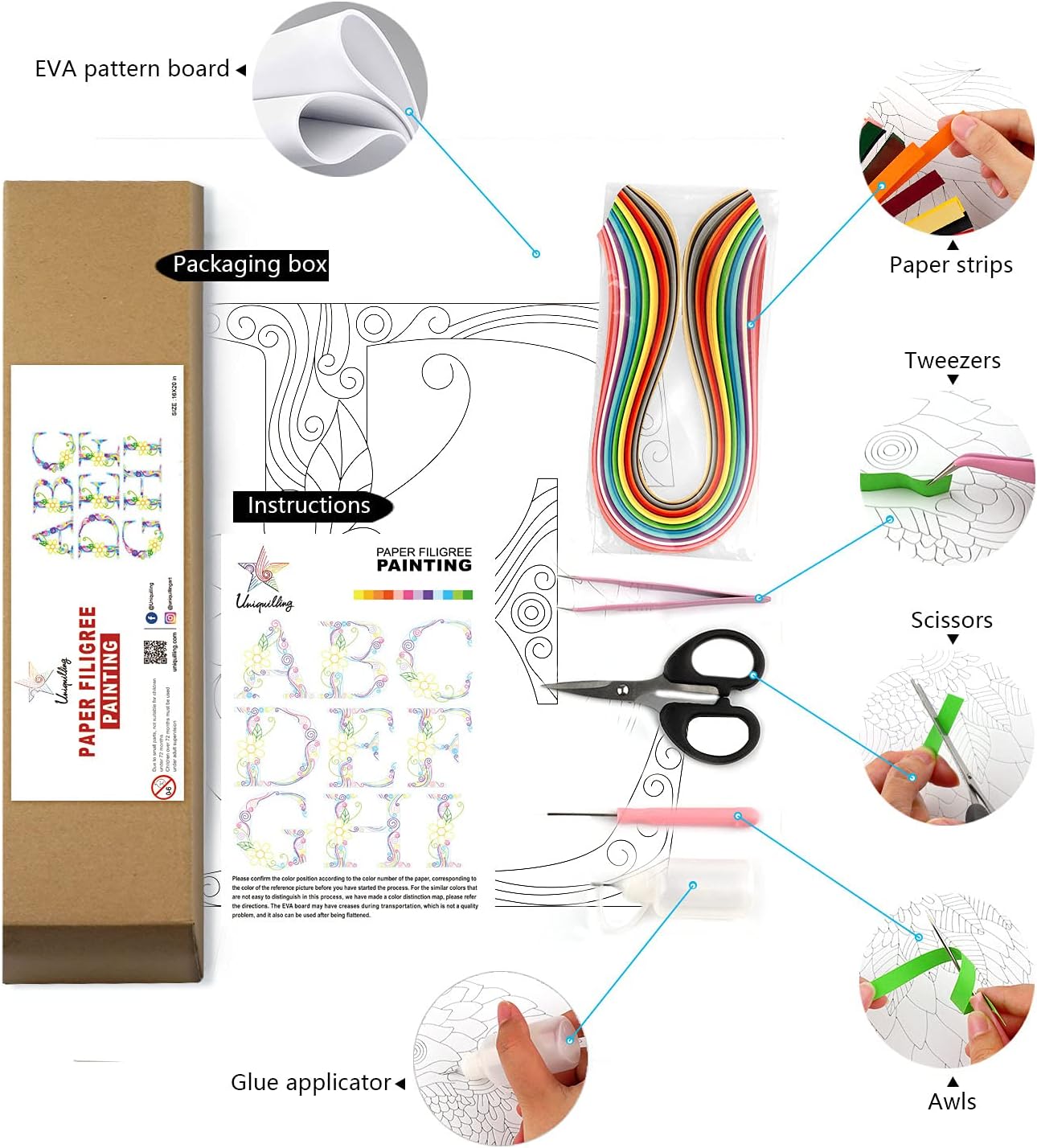 Uniquilling Quilling Kits, 8 * 10-in Letters A Paper Filigree Kits with Quilling Tools& Using Manual, Paper Quilling Kits, DIY Quilling Artwork Modern Wall Art for Living Room