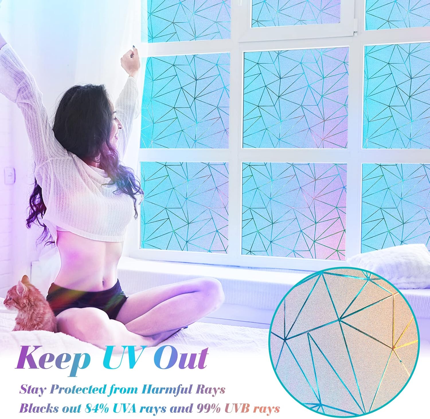 Coavas Rainbow Window Privacy Film, Frosted Glass Static Cling, Decorative for Bathroom Door, UV Blocking Window Cling, Non-Adhesive Vinyl Sticker, Day and Night Windows Tint for Home, 35.4x78.7 Inch