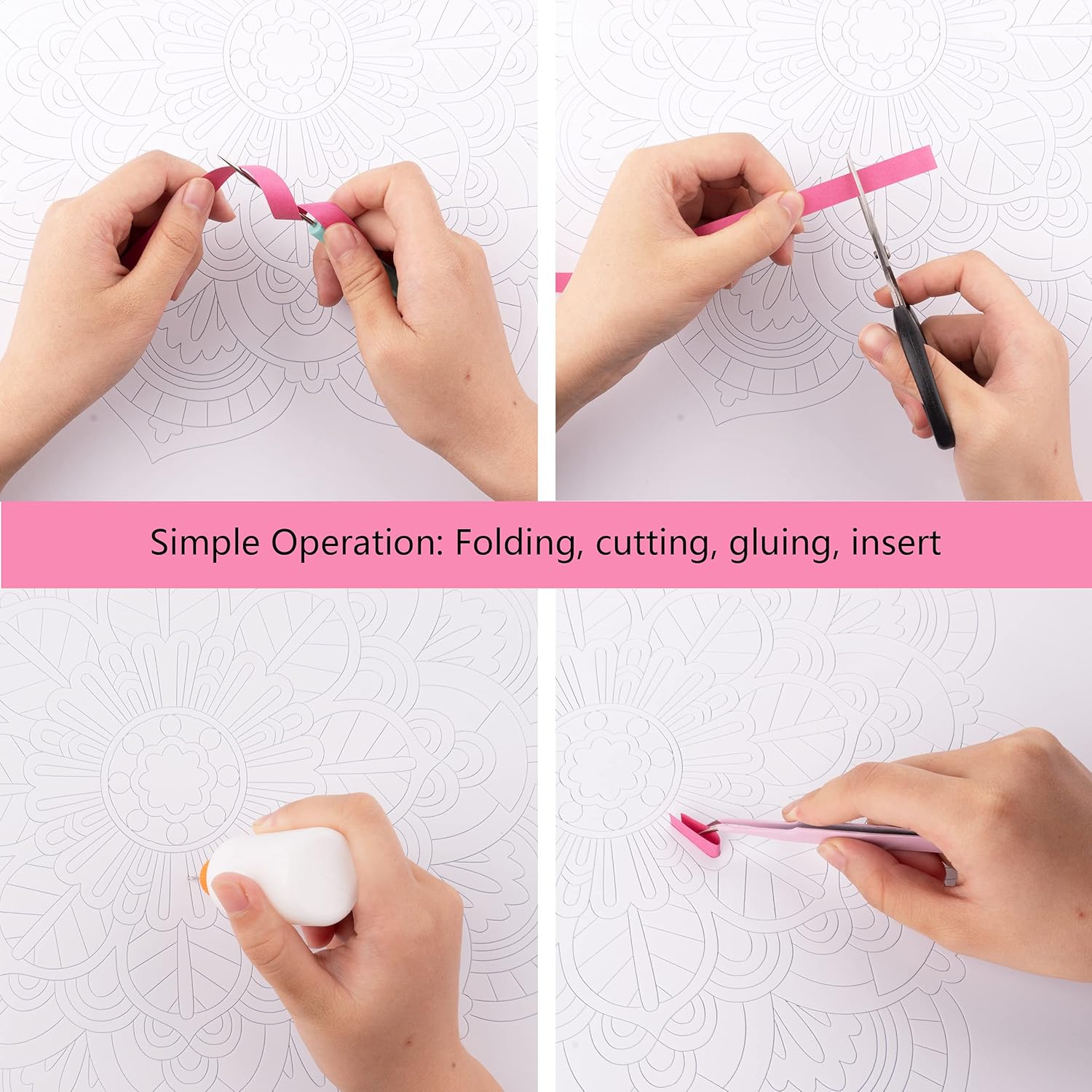 - 【Basic KIT Contains】 Painting kit: EVA pattern board*1, paper strips*1set, instructions, tool kit*1 (tool kit: Glue applicator, Tweezers, Awls, Scissors. Note: no glue.)