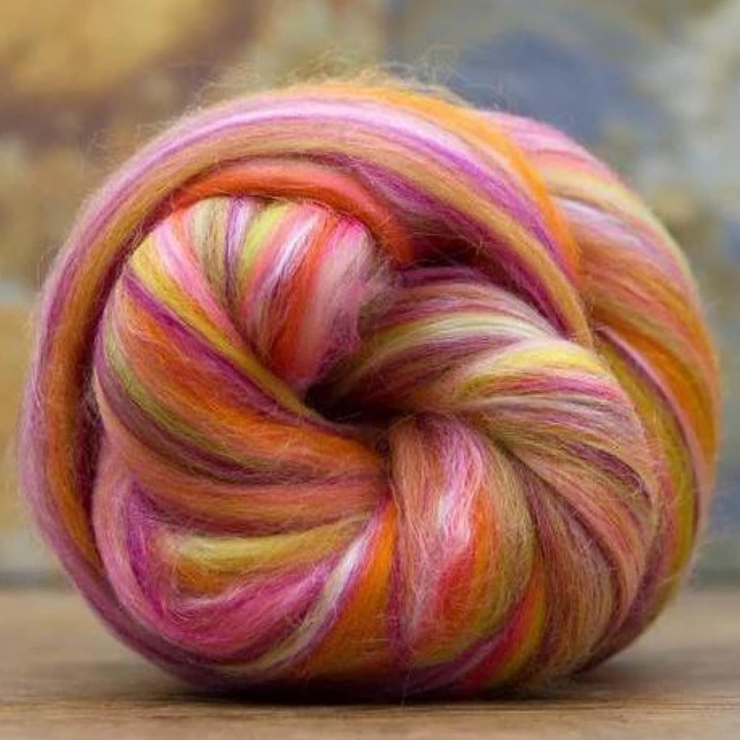 Revolution Fibers – Constellation Range Roving (8 Ounces) | Multicolored Tonal Blend of 70% Dyed Merino and 30% Tussah Silk Combed Top | Soft Fiber for Felting, Spinning, Knitting (Libra Orange)