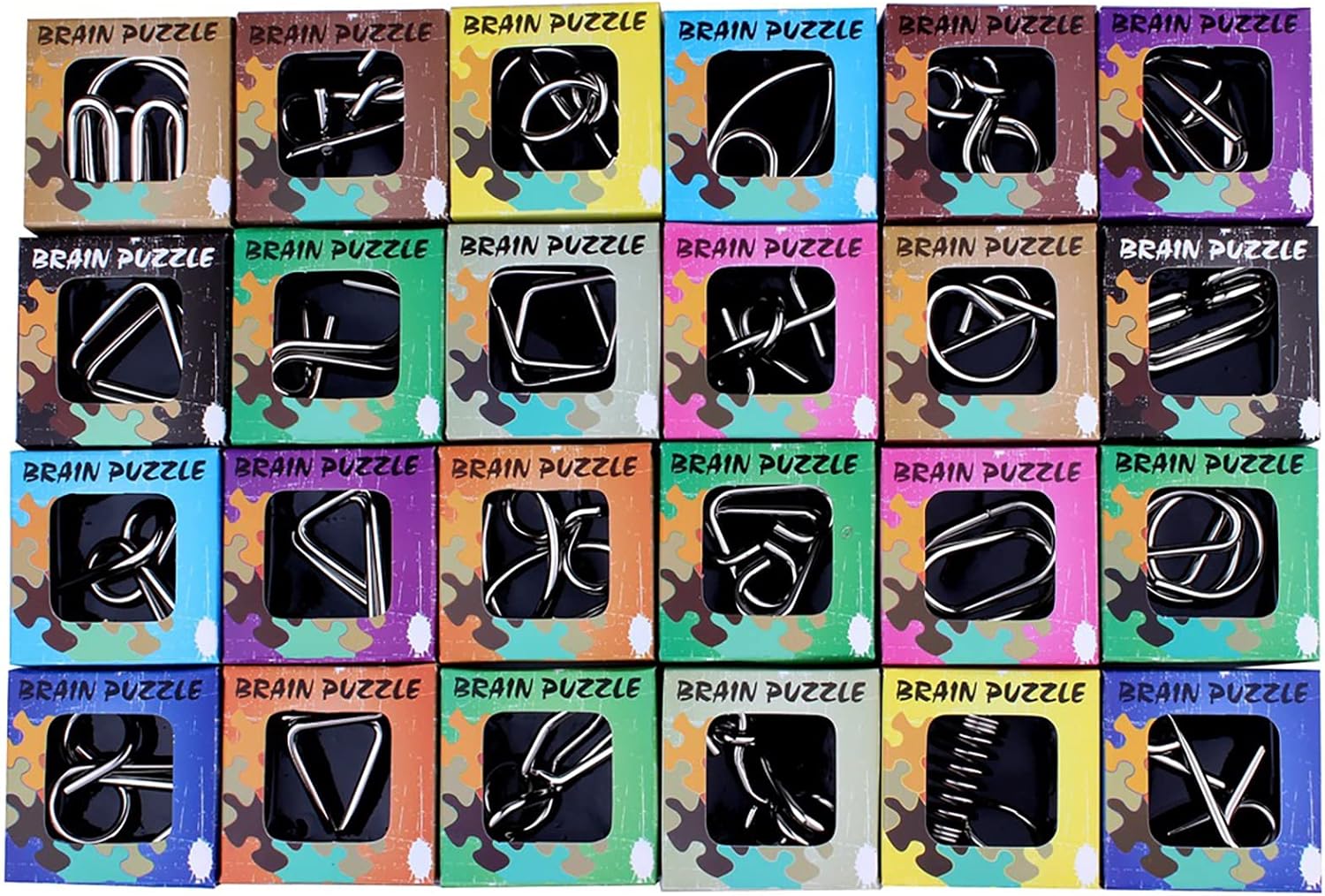 AHYUAN 24 Pack Metal Puzzles Brain Teaser IQ Wire Metal Puzzles with Paper Box Gift Package Fidget Toys Educational Puzzle Games Toys Magic Trick Toy Party Favors for Kids Adults Challenge
