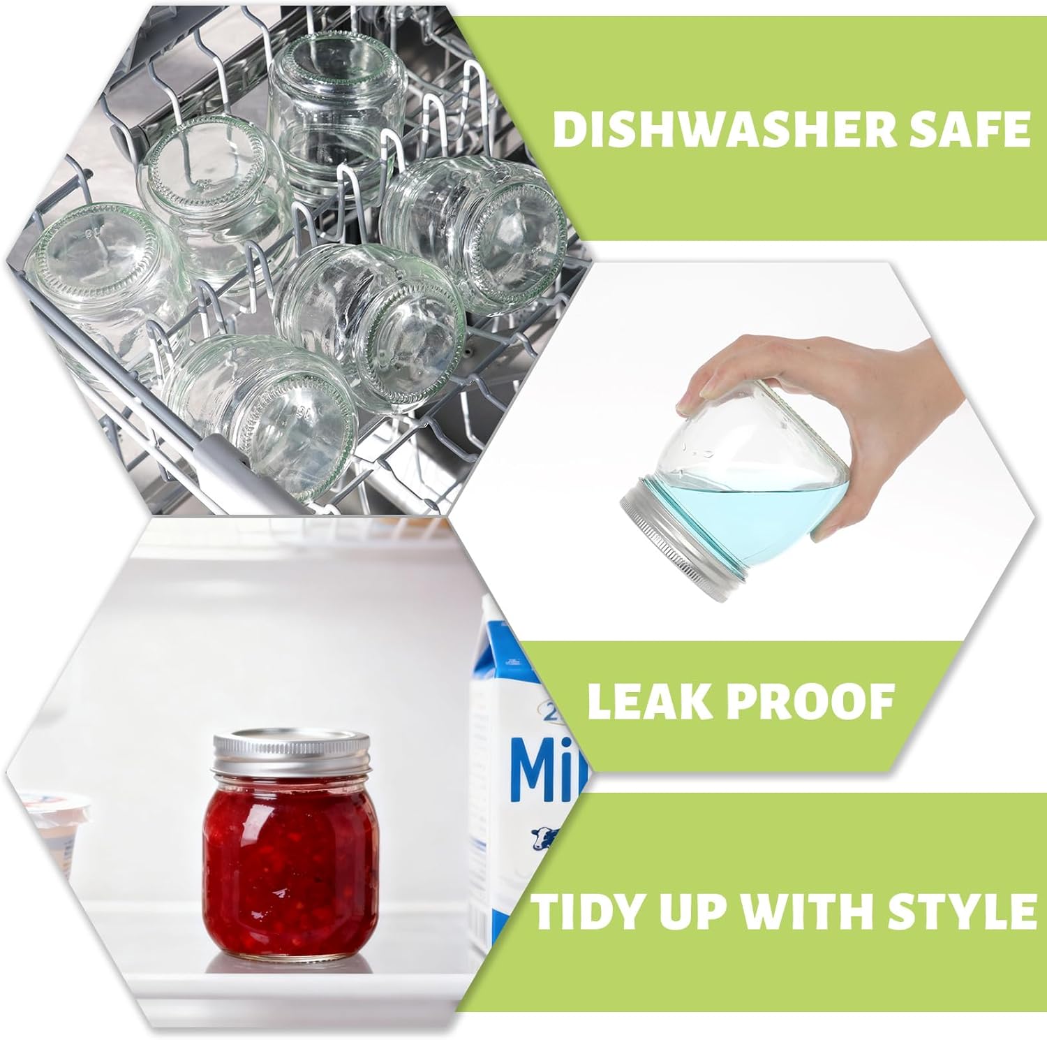 - BPA Free and food grade dishwasher safe glass mason jars, your best choice of food storage. It is also suitable for crafts and decorations. You can paint them and decorate in the party, or make any DIY projects you want