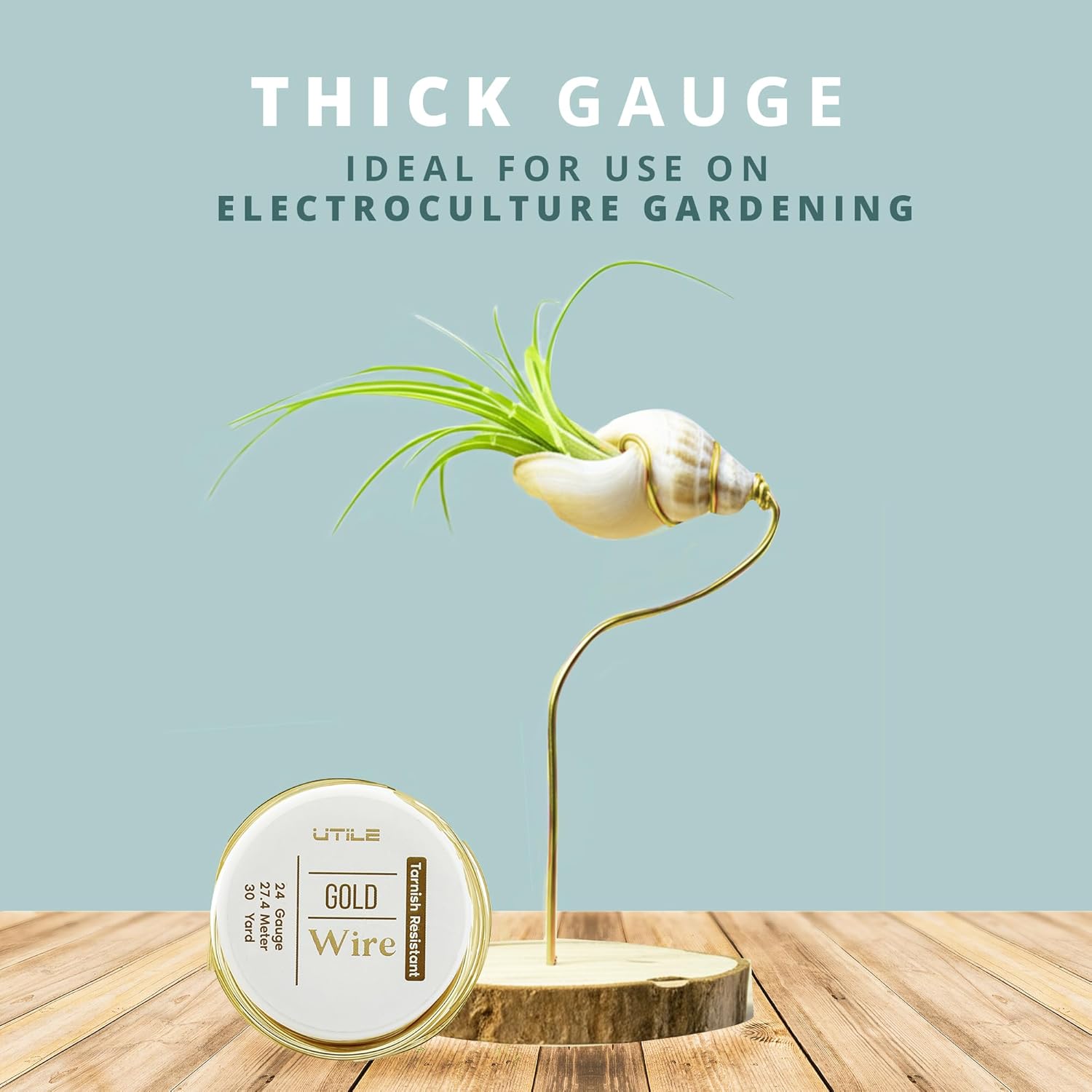 UTILE 18 20 22 24 Gauge 90 ft 99.9% Pure Soft Copper Wire for Electroculture Gardening, Jewelry Making, Crafting Wire Bendable, Plant Wire (Gold 24)