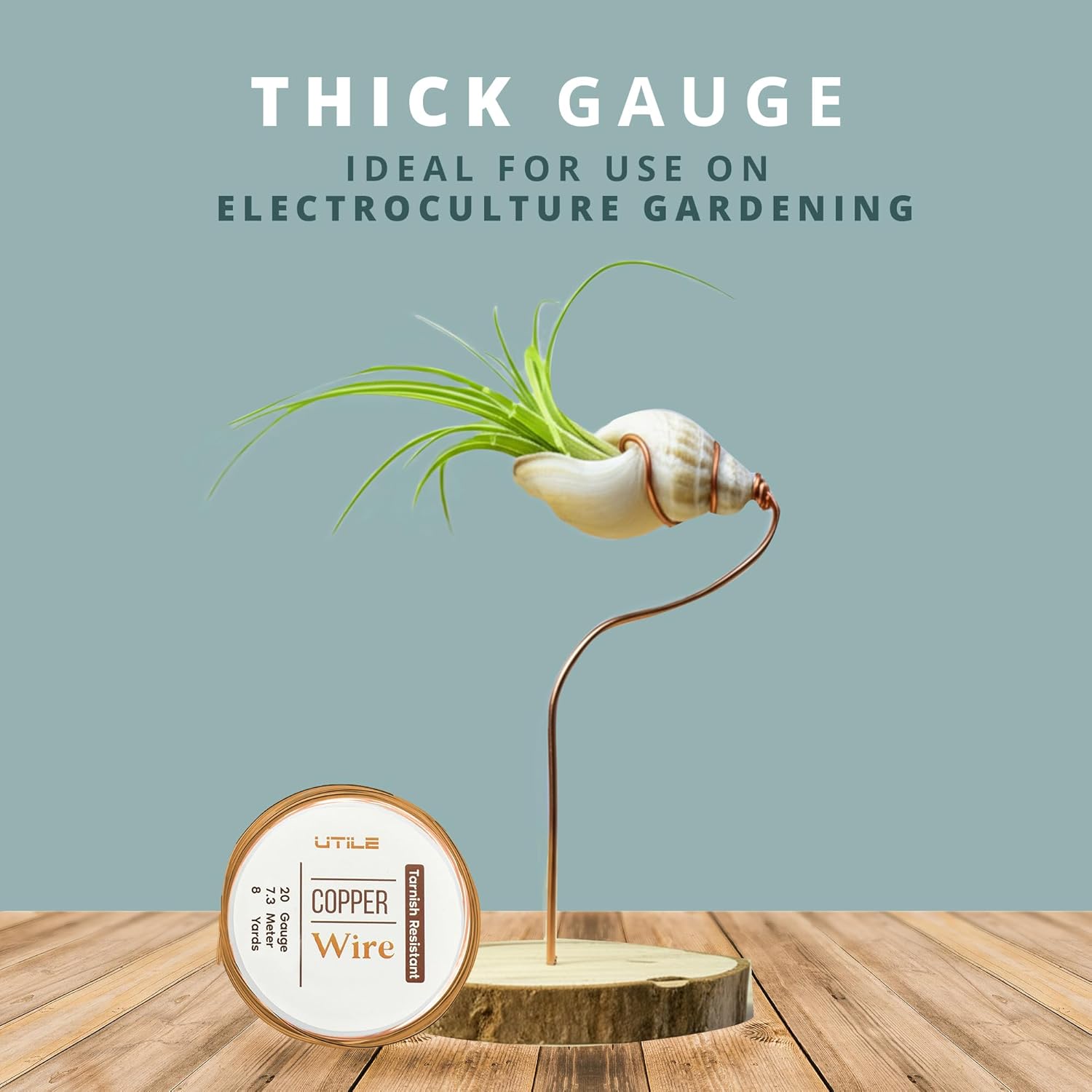 UTILE 18 20 22 24 Gauge 90 ft 99.9% Pure Soft Copper Wire for Electroculture Gardening, Jewelry Making, Crafting Wire Bendable, Plant Wire (Copper 20)