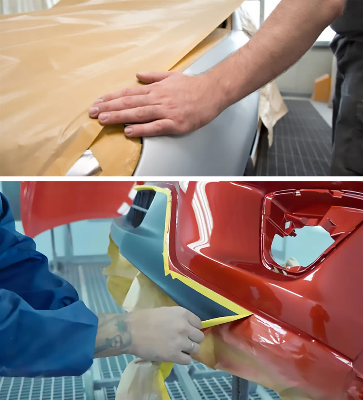 - 【Strong Adhesive & Clean Removal】Automotive paint masking paper is strong and stable, leaves no residue after removal, leaving super sharp lines, no bleed, without sticky residue.compared with most other masking papers on the market, Our masking tape is wider and better adhesionr, masking paper less prone to tearing, better protected,