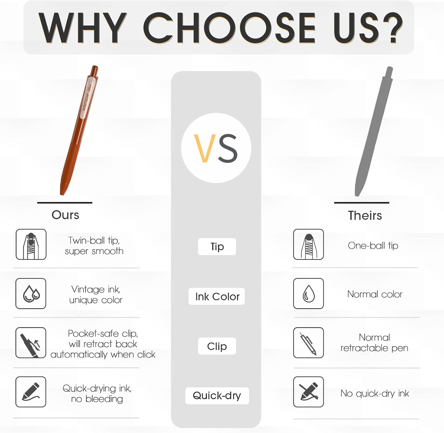- Multi-function Pen Clip: You can clip the gel pens to the book or the bag, which is convenient to carry and prevents loss. Also when you click the clip, the tip will retract automatically, that will not stain your book or pocket.