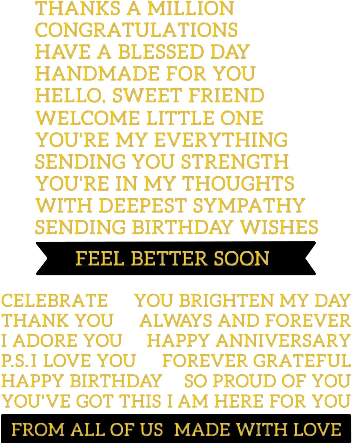 - Package Includes: Sentiments words hot foil plate set and 2 pcs banners cutting dies in total. Just print the foil words on the cut banner background. Perfect blessing words for Valentine's Day, Saint Patrick's Day, Easter, Mother's Day.
