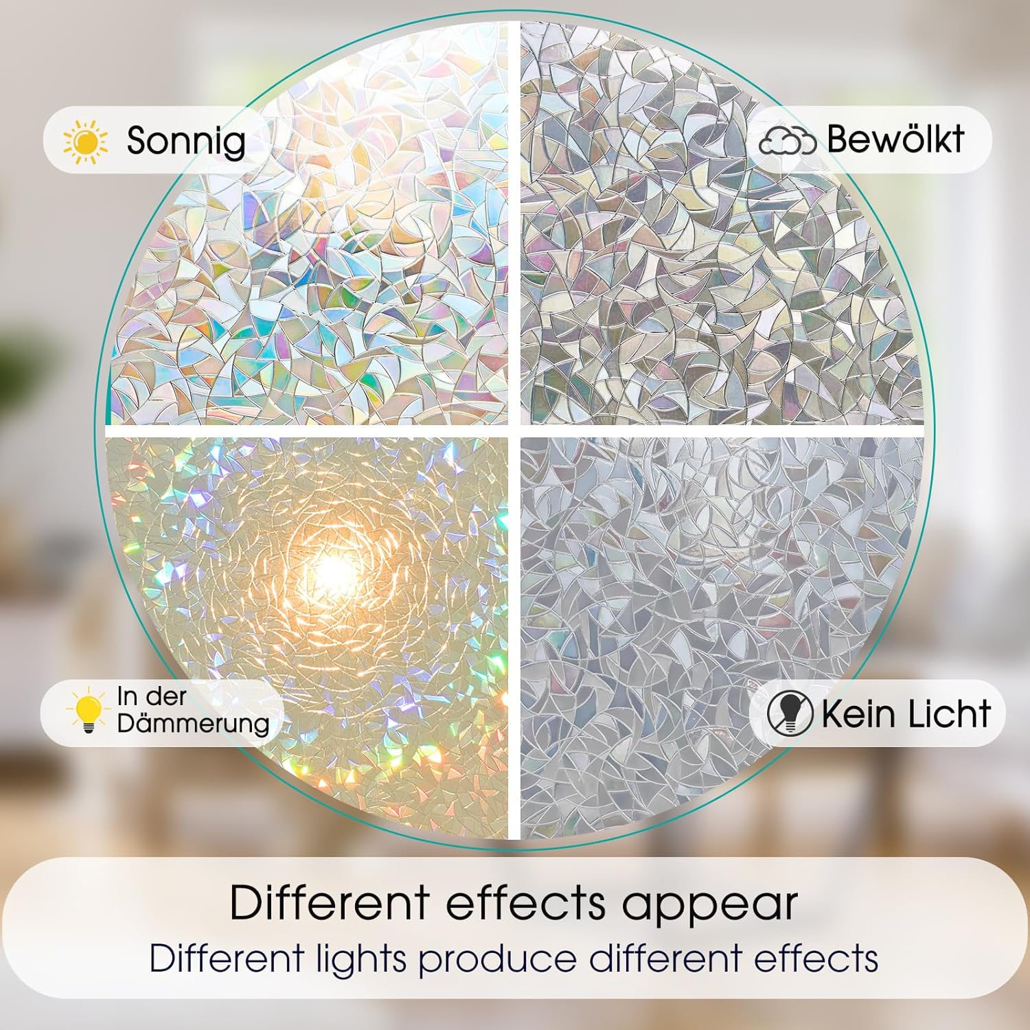 - Important Fact to Know:The rainbow window film itself does not have any color, special 3D laser design, after installation, the sunlight shines on the privacy film, presenting a colorful visual effect.