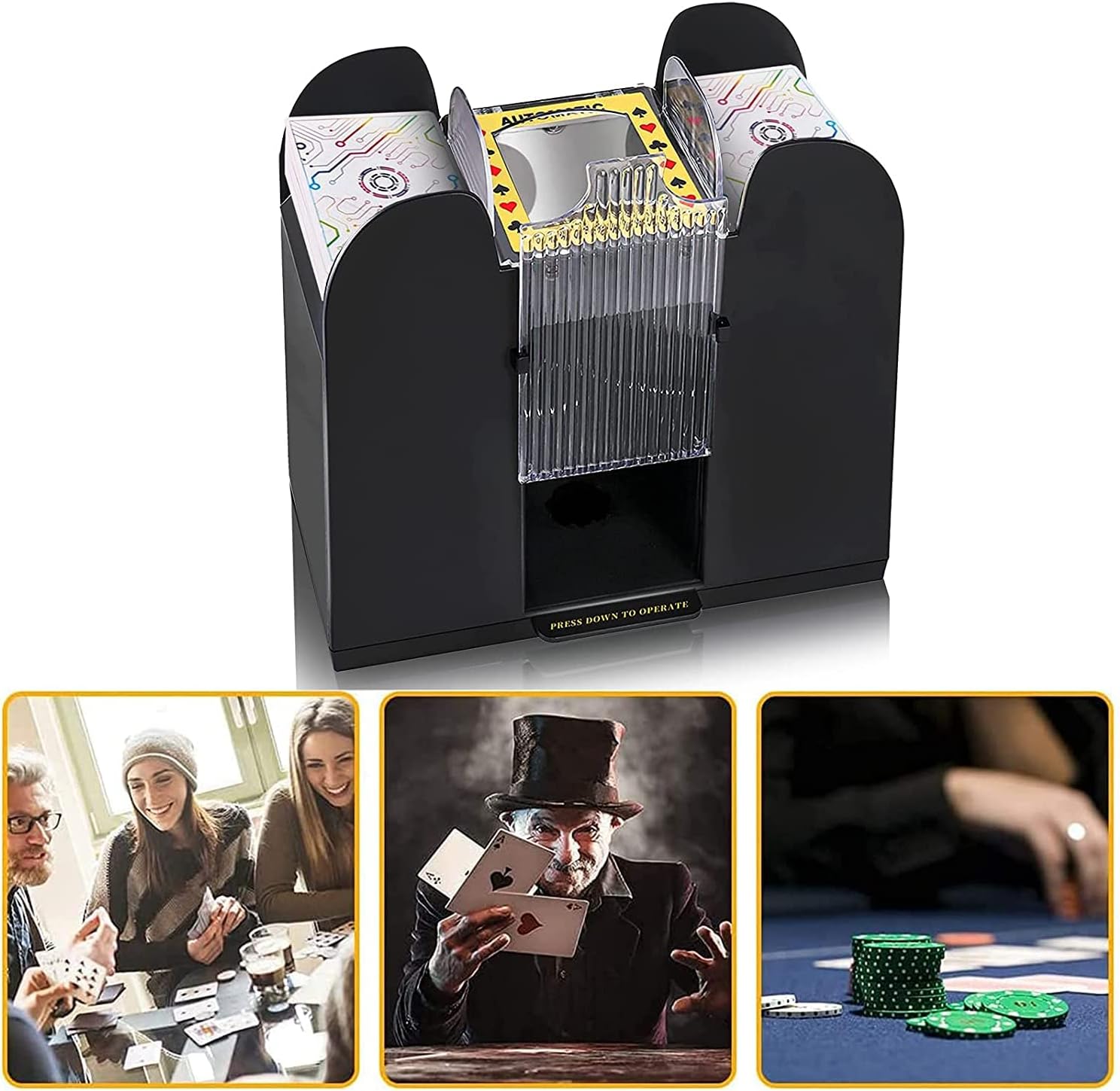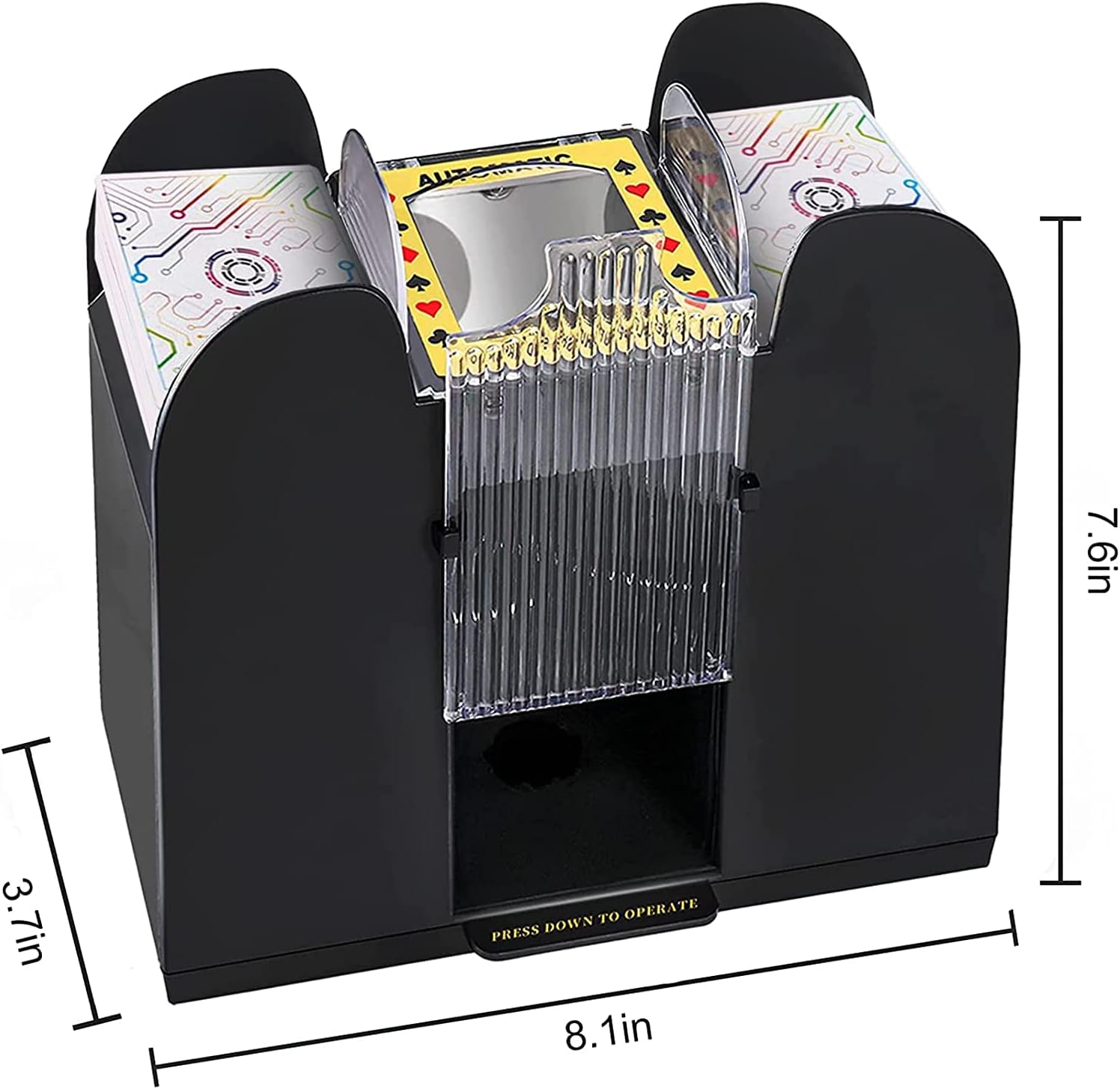 - 【 Multi-Purpose 】 The card shuffler is perfect for Cards Against Humanity, poker, Texas Hold'em poker, blackjack, and trading card games, and most regular-sized cards could fit. Can hold up to 6 decks of standard cards or bridges.