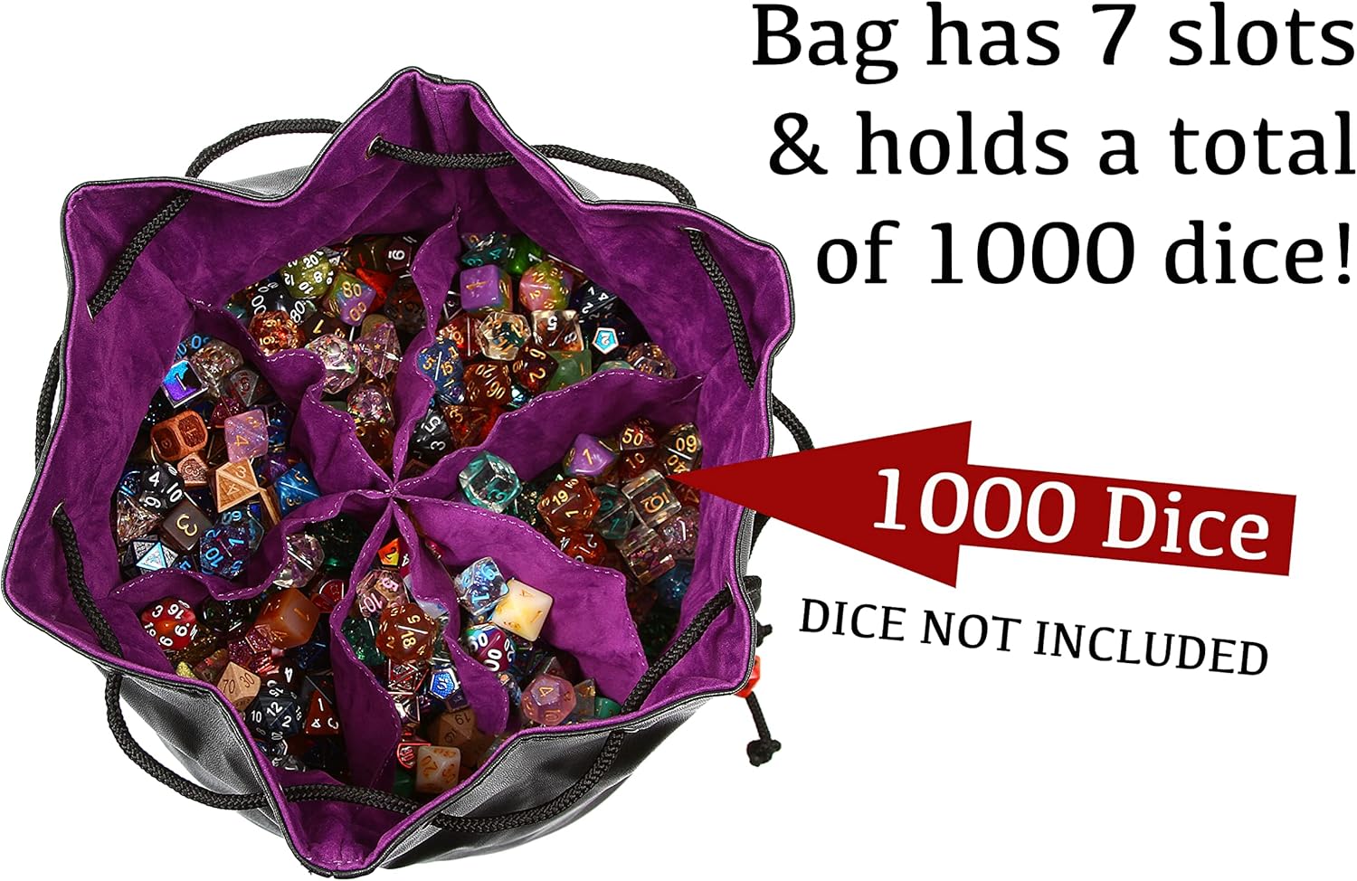 - Huge: The Pouch of the Endless Hoard holds all the dice. We ran out at 1,000 and there was still room in the 7 divided dice storage pockets