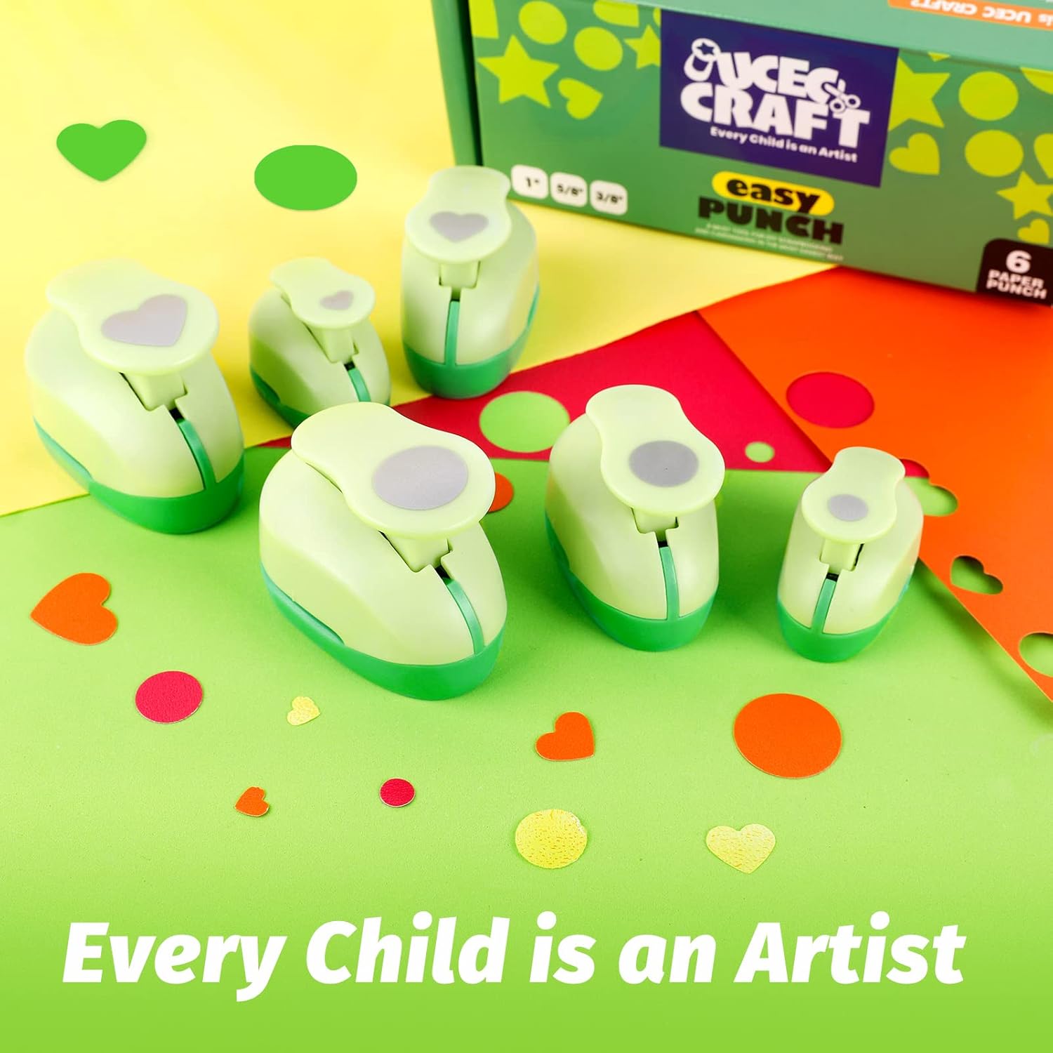 - Child-friendly Punch : Ergonomic handle of heart paper punch & circle hole punch could not cause a paper jam, so you could punch out hearts and circles easily and quickly with a nice look. Craft hole punch with compact size and spring-operated design fit for kid's small hands, easy to use. And a narrow slot to avoid hurting the fingers