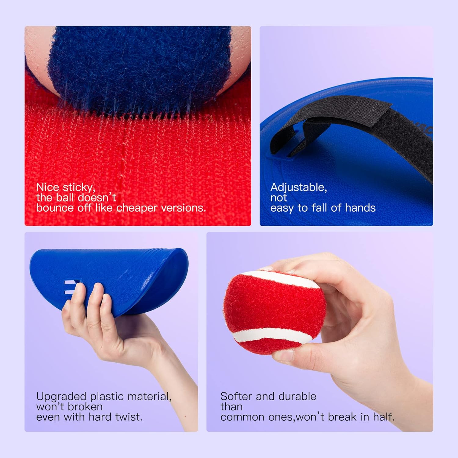 - 【Softer and High-quality Ball Set】The old version's tennis balls were very hard and lacked elasticity, making them difficult for kids to catch. Our balls are much stronger and softer, yet still have great stickiness, so kids can easily catch them and enjoy a comfortable feel. Kids won't lose their fun because they can keep catching the ball. This ball game is always lots of fun for little ones, even at family reunions.