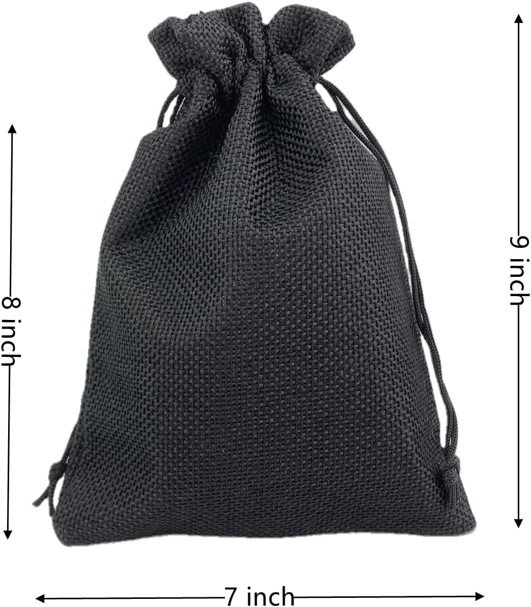 - Palmhomee Pack of 25 Burlap Gift Bags with Drawstring Linen Jewelry Pouches Wedding Hessian Jute Bags for Birthday Jewelry and Treat Pouches Party Wedding Favors Gift Art and DIY Craft (7x9 Inch, Black)