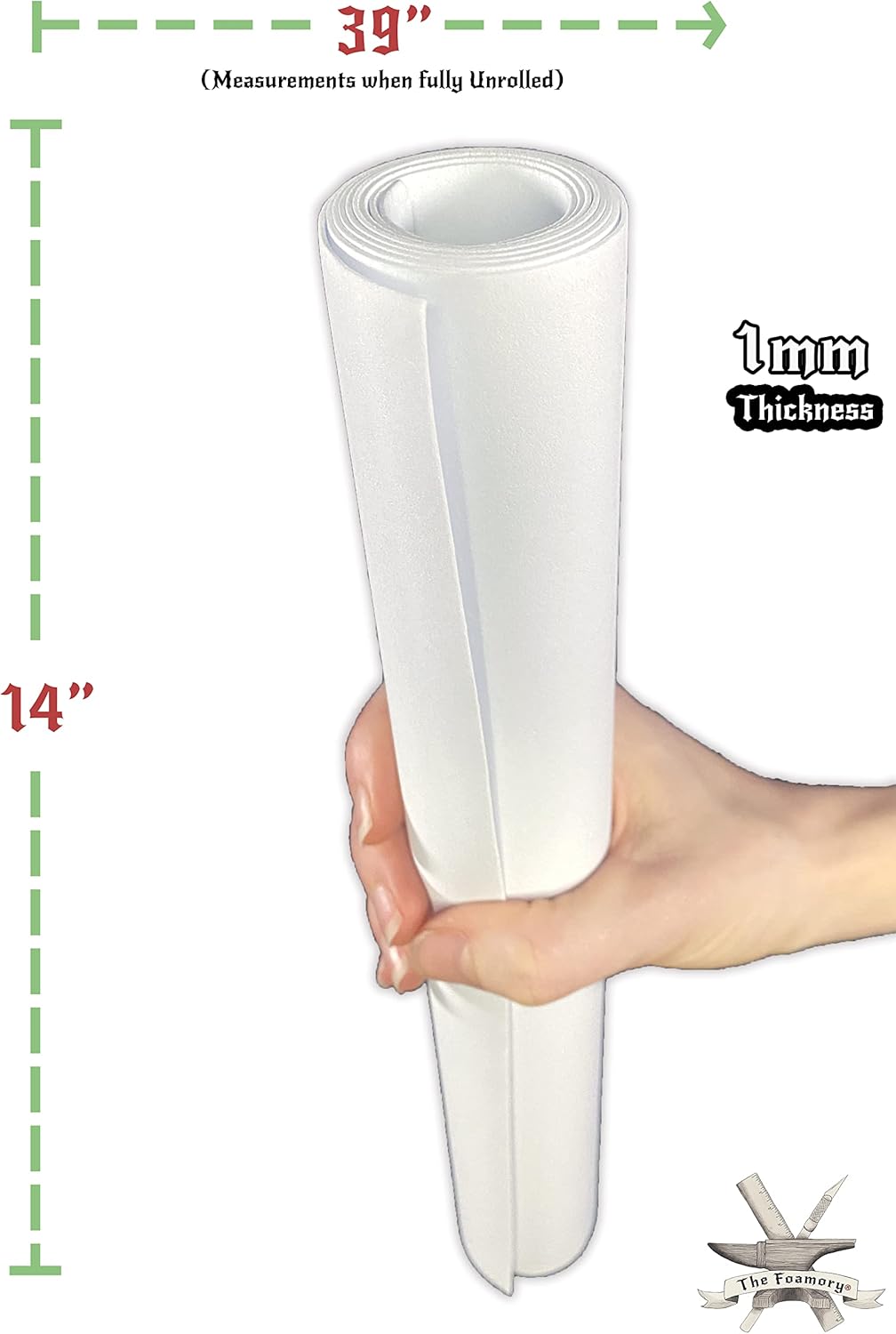 Shape Retention EVA Cosplay Foam 1mm (1mm-10mm) 14x39 inch White or Black High Density EVA Foam Sheets. Premium 85 kg/m3 Heat Shape Material for DIY Convention or Halloween Costumes by The Foamory