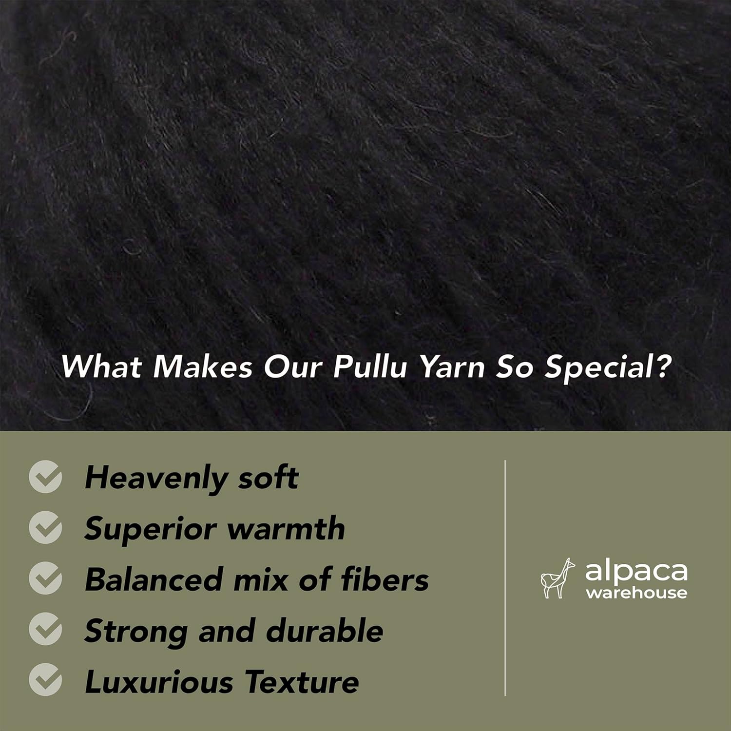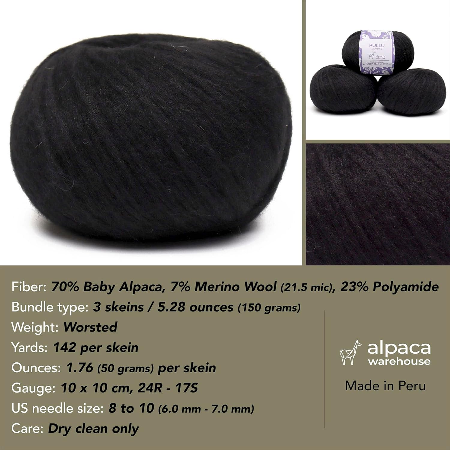 Pullu - Baby Alpaca Merino Wool Yarn Set of 3 Skeins (150 Grams) Worsted Weight - Sourced Directly from Peru - Heavenly Soft and Perfect for Knitting and Crocheting (Black)