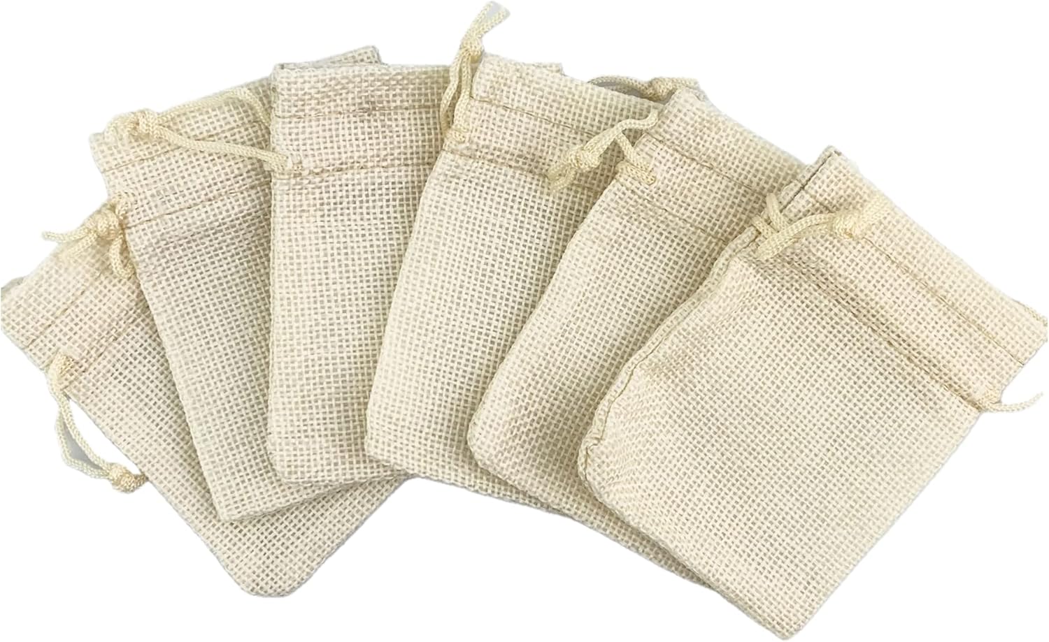 - Palmhomee Pack of 25 Burlap Gift Bags with Drawstring Linen Jewelry Pouches Wedding Hessian Jute Bags for Birthday Jewelry and Treat Pouches Party Wedding Favors Gift Art and DIY Craft (2.8x3.6 Inch, Cream)